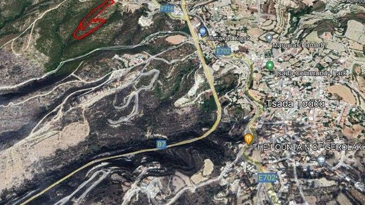 Недвижимость расположена в сообществе Цада около 300 м к северо-западу от Пафоса на улице Полиса. Доступ к активу считается хорошим. Он имеет нерегулярную форму и наклонную поверхность. Он имеет прекрасный вид на окружающую среду.При условии НДС