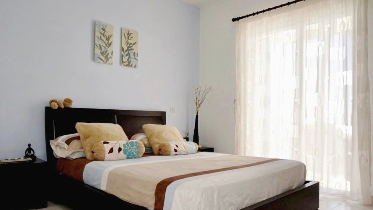 Очаровательный трехкомнатный апартамент (Кр.площадь: 79 м2 + Кр.веранда: 18 м2) с современным декором и с качественной отделкой, меблированный и оборудованный, включают в себя: удобную прихожую / открытой планировки просторную гостиную со столовой зоной / частично раздельную современную оборудованную кухню / противоположные две двойные спальные комнаты со встроенными шкафами и две ванные с душевой.