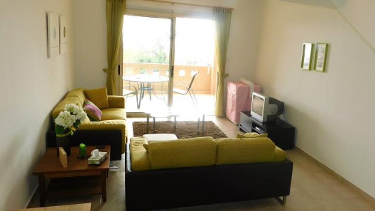 Продается таунхаус площадью 97 кв.м В Пафосе. Таyнхаус расположен на 2 уровнях. Первый этаж состоит из гостиной с кухней, одного санузла. Второй этаж состоит из 2 спальных комнат, одной ванной комнаты. Из окон открывается вид на море, на горы. У объекта есть солнечные батареи для нагрева воды, кондиционер. Недвижимость продается с мебелью. К недвижимости относится парковочное место, сад. В распоряжении владельцев общий бассейн на территории.