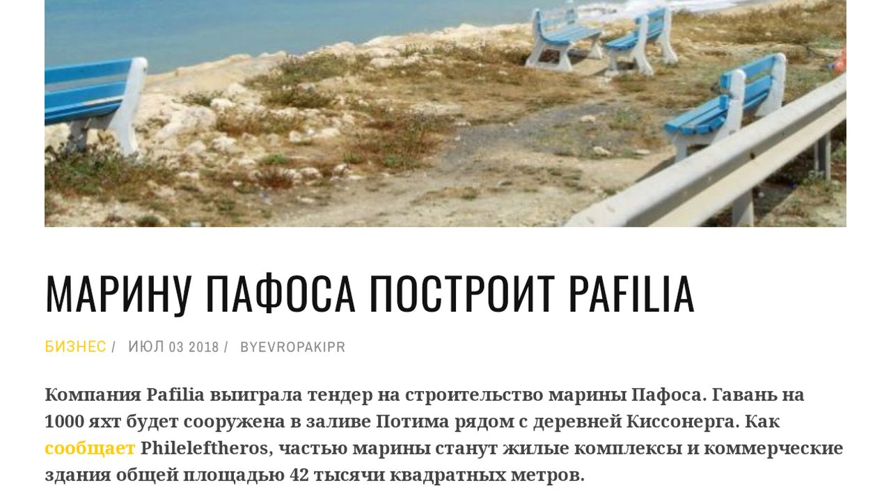 * Пафосская Пристань для 1000 яхт будет построена в ближайшее время, что даст толчок местной экономике