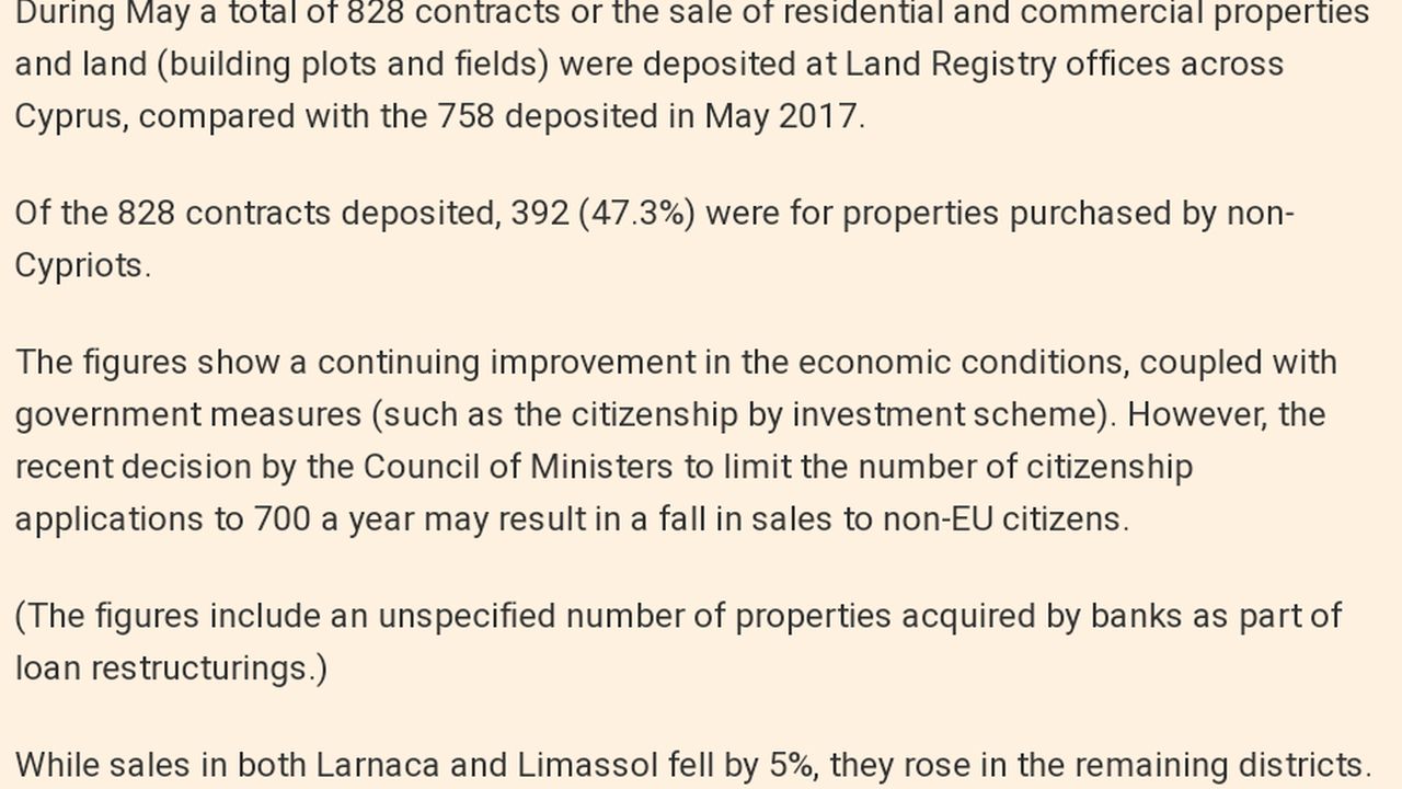 * Продажи зарубежной недвижимости в Пафосе выросли в мае 2017 года до уровня мая 2016 года на колоссальные 533%