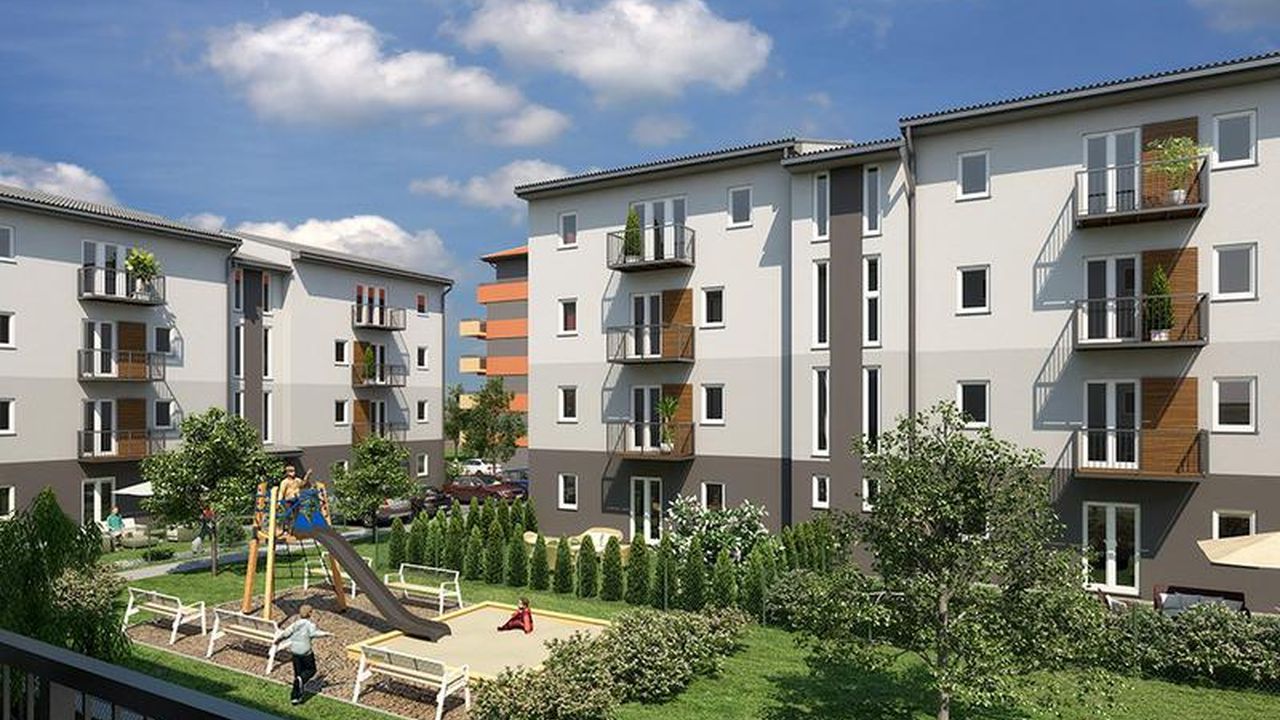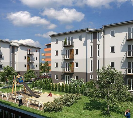 Чехия. г. Кладно. Жилой комплекс “Garden Park” состоит из двух современных четырёхэтажных домов. Здания имеют форму в виде буквы “L”, благодаря чему между ними возникает замкнутое пространство с уютным внутренним двором и детской игровой площадкой. Всего в комплексе будет находится 86 квартир от 1+кк до 4+кк и 2 отельера. В цену жилья входит высококачественная отделка, дополнительно предоставляется широкий выбор оборудования по выгодным ценам: напольное покрытие, сантехника, кафель.