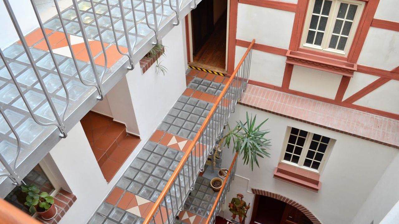Объект представляет собой комплекс, состоящий из трех зданий, которые соединены застекленным двором и стеклянным лифтом. Ресторан вместимостью 150 посадочных мест, бар вместимостью 20 посадочных мест.