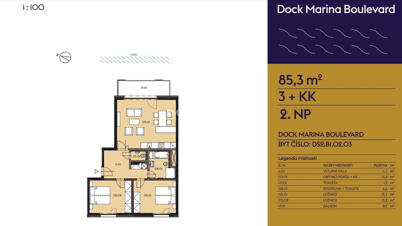 Чехия. Прага. Новая квартира 85, 3 кв.м. 3+КК с гаражом в резиденции DOCK MARINA BOULEVARD, PRAHA 8 LIBEN