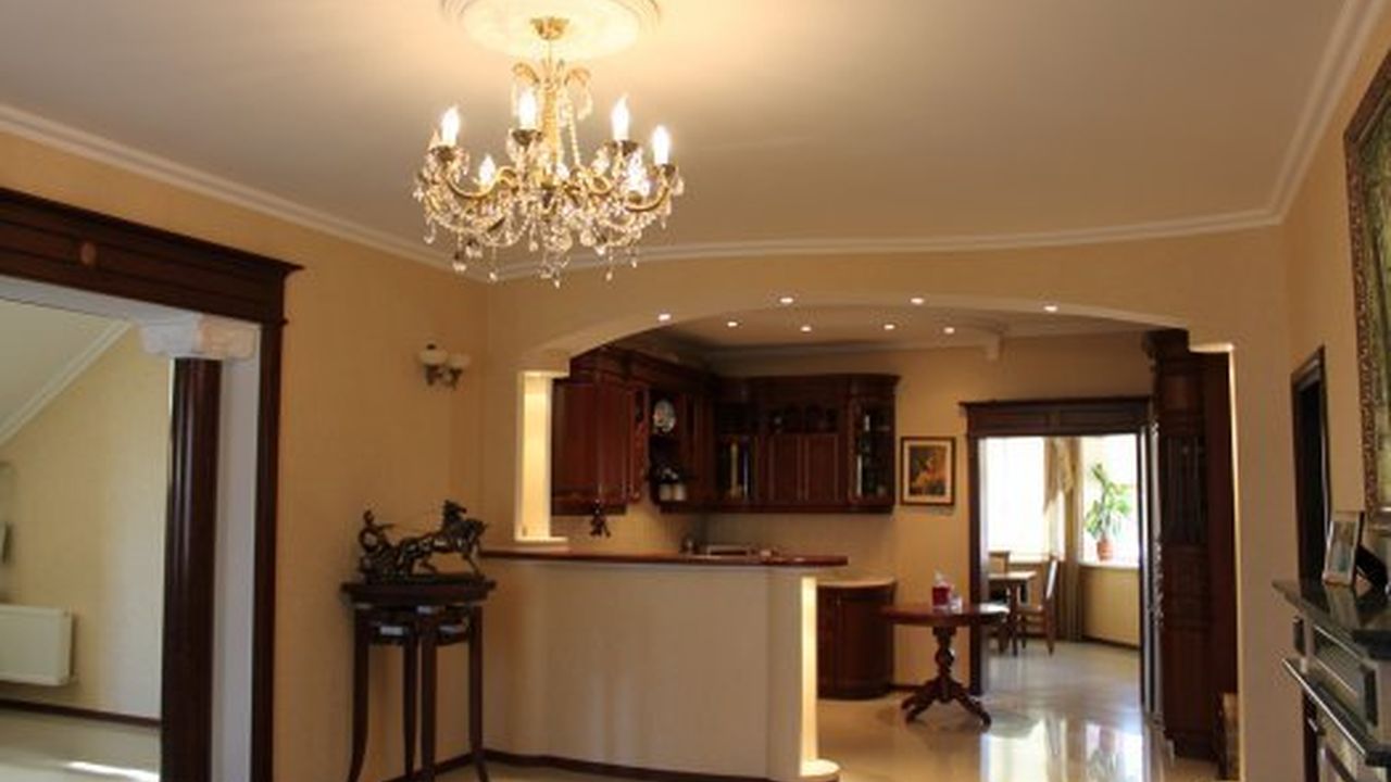 Дом находится на участке В 9 соток. Сделан ландшафт. Дом общей площадью 330 квадратных метров. Сделан в стиле 19 века.