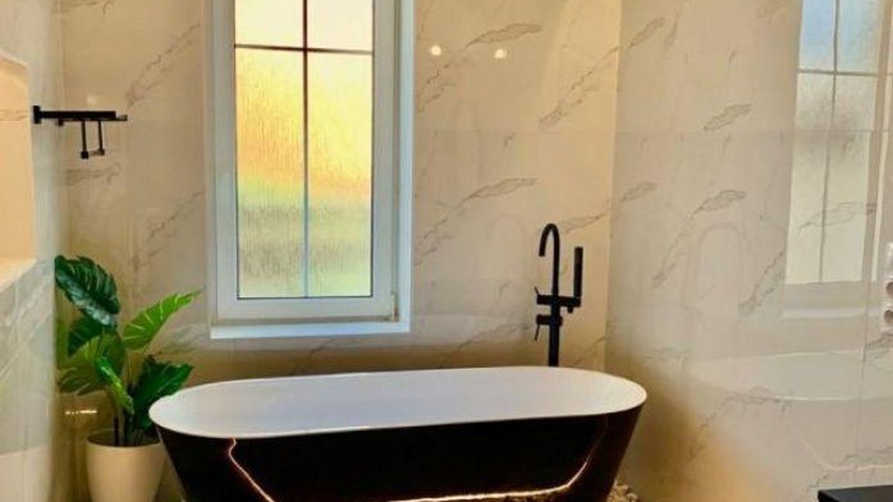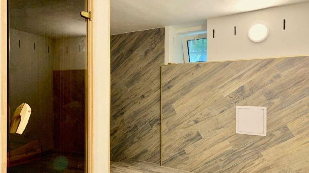 На двух этажах есть спальни, ванная комната с душем, ванная комната с ванной и 2 отдельными туалетами. На первом этаже есть гостиная с столовой и камином. Также имеется техническая комната для прачечная. В подвале есть оздоровительная зона с сауной.