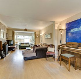 На первом этаже также находится гардероб и подсобное помещение. На втором этаже: главная спальня с собственной ванной и гардеробной комнатой, дополнительные три спальни, общая ванная комната, подсобное помещение. В задней части дома расположен сад с деревьями и цветами. Имеется также терраса, которая прекрасно подходит для отдыха. Недавно был построен охраняемый гараж.