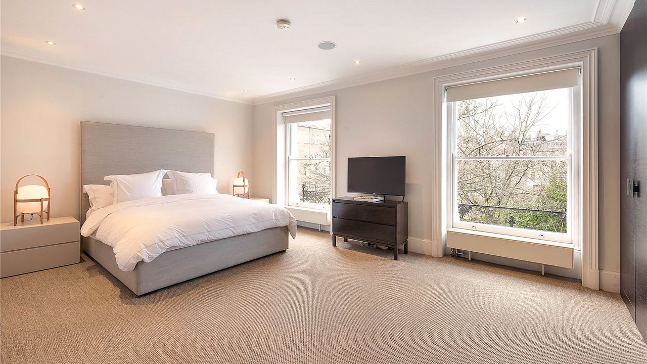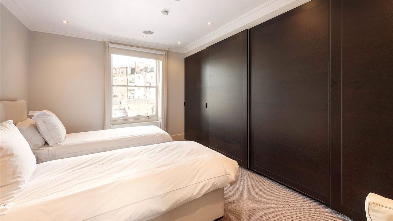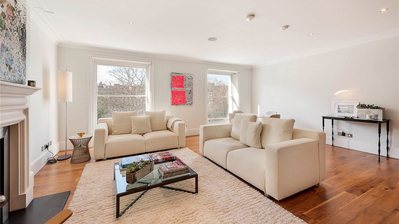 Эта элегантная квартира расположилась на втором этаже старинного здания, с низкими окнами и видом на сад Cadogan Place. Площадь сада приблизительно 3 гектара. В квартире две большие спальни (с ваннами), кабинет или небольшая 3-я спальня.