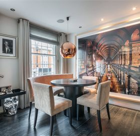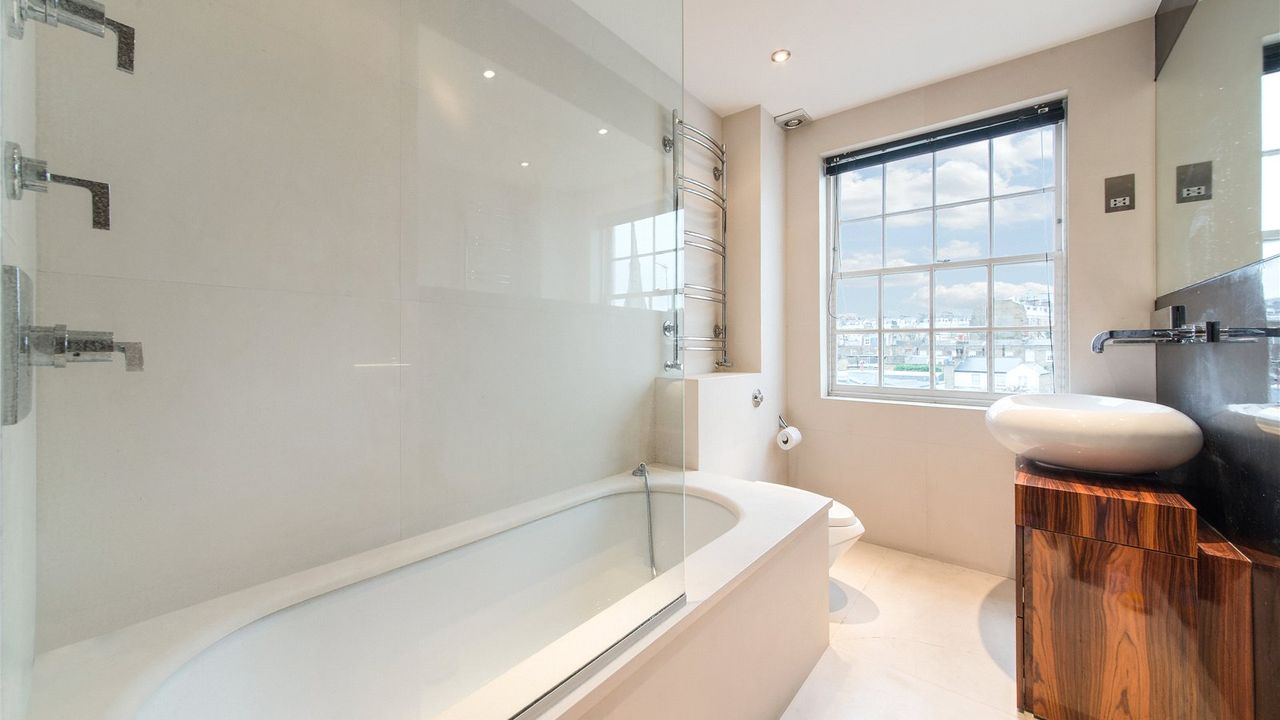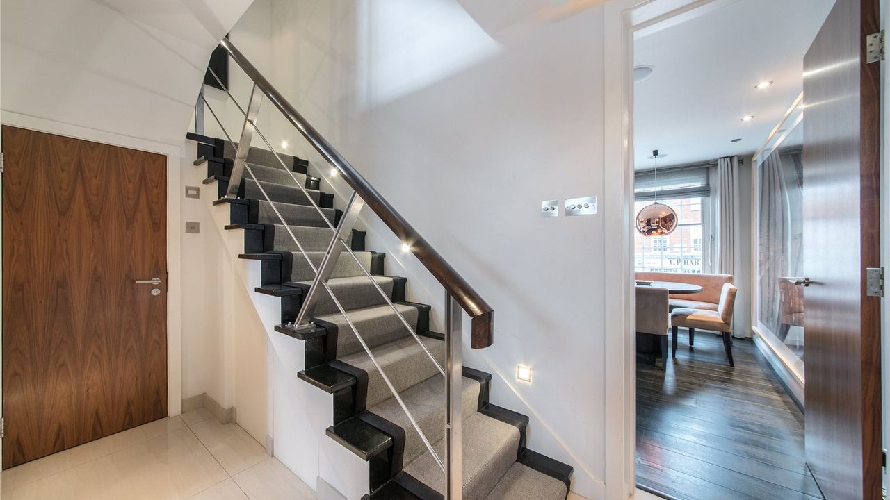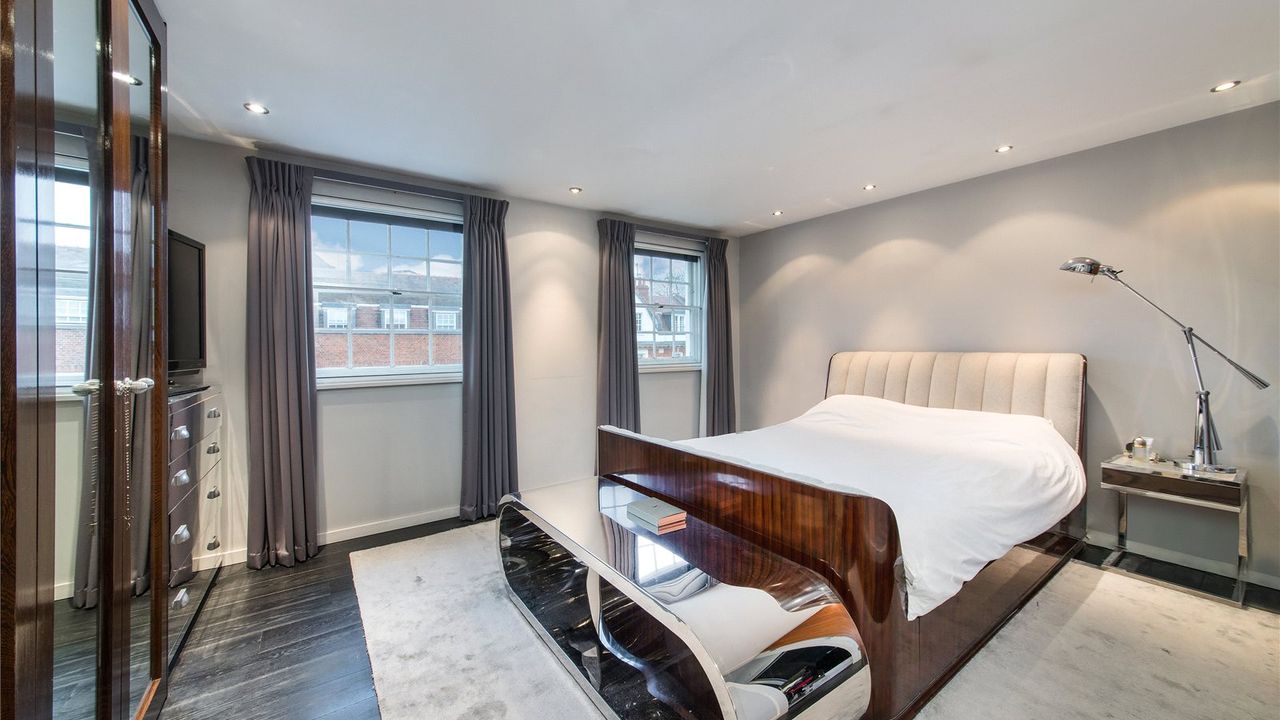 На верхнем этаже, как и на втором: большая спальня с двуспальной кроватью, дополнительная спальня и ванная комната. Дом представлен в современном стиле (стиле контемпорари).