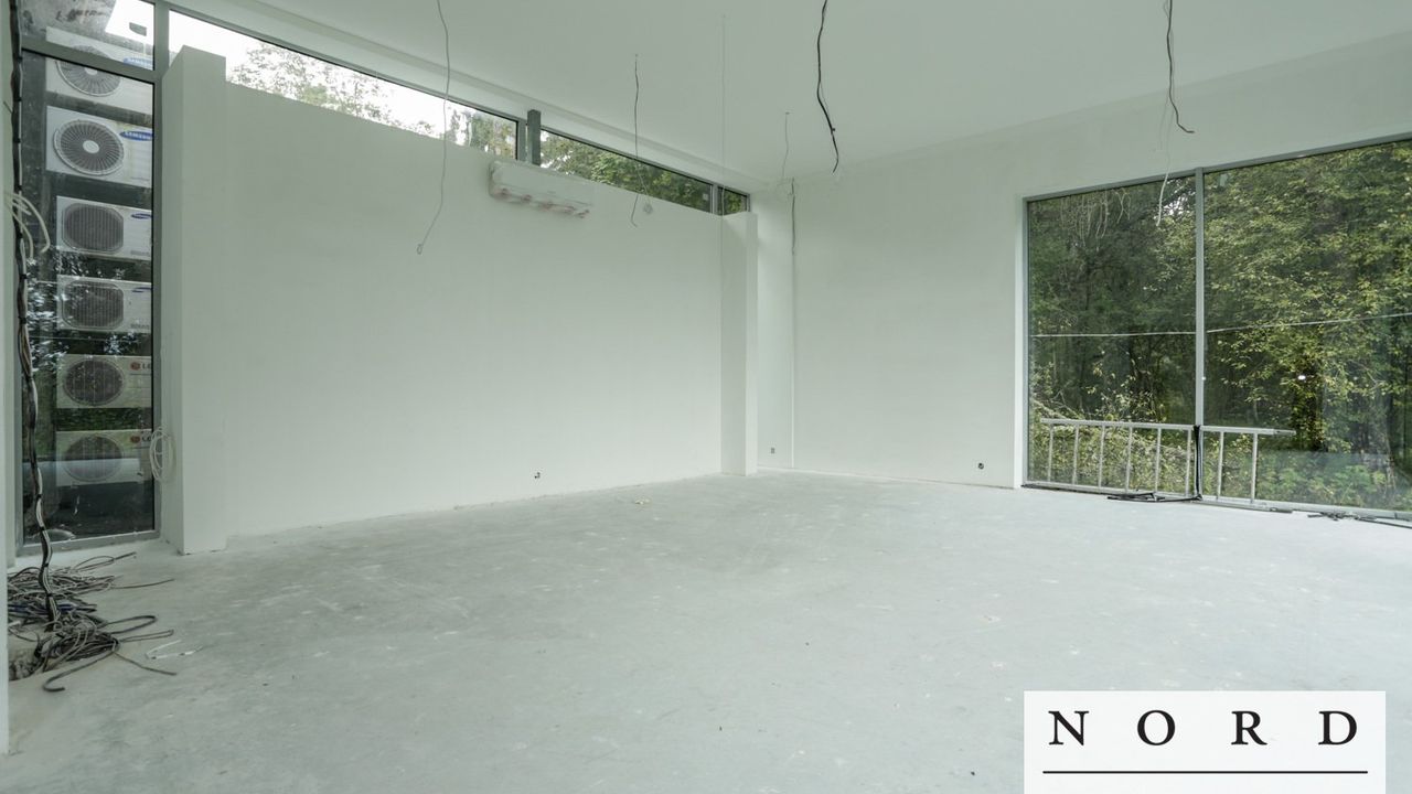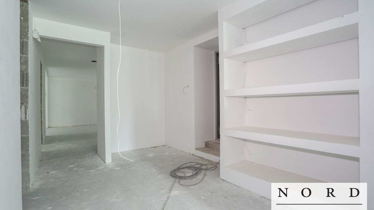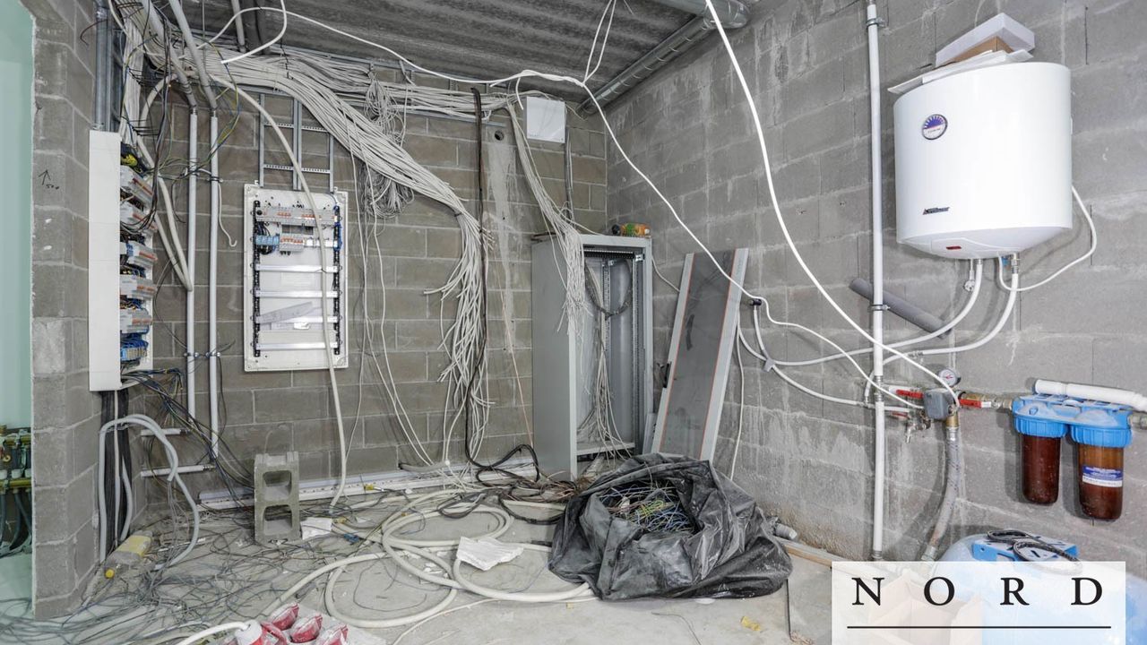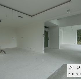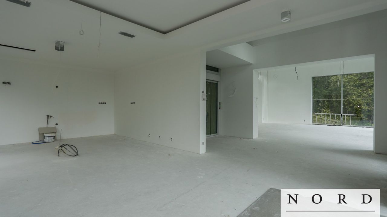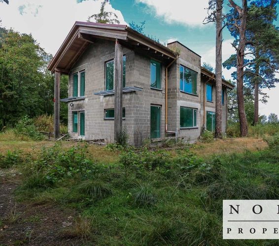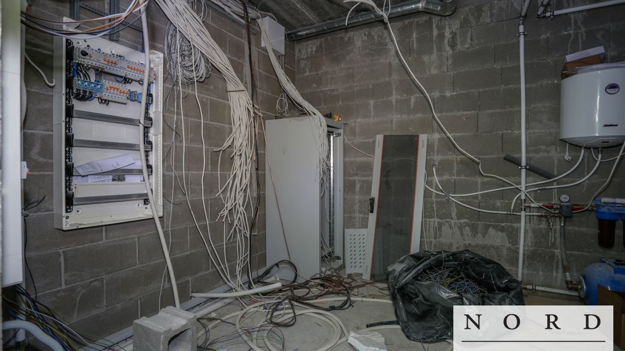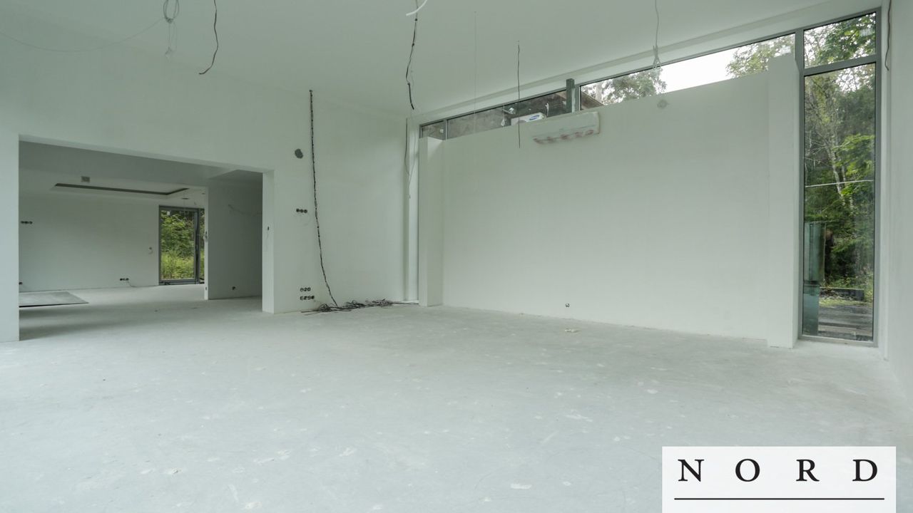 The architect of the residence is Nauris Briedis. It is built with Columbian stone and is insulated. The residence is ready for inner decoration works. A local central heating, air-to-water heat pump, based on water underfloor heating are installed. The movement between ground floor and first floor is currently only with an Vimec easy moving elevator. The detailed plan shows that it is also possible and planned to construct a staircase in between the ground- and first floor. All the storeys have underfloor heating, ventilation and all the electric cables are installed, including the audio cables. The residence with the corrugated roof has high ceilings and double windows. The property has its own artesian well and a drain field septic sewage, which needs to be emptied once or twice a year.