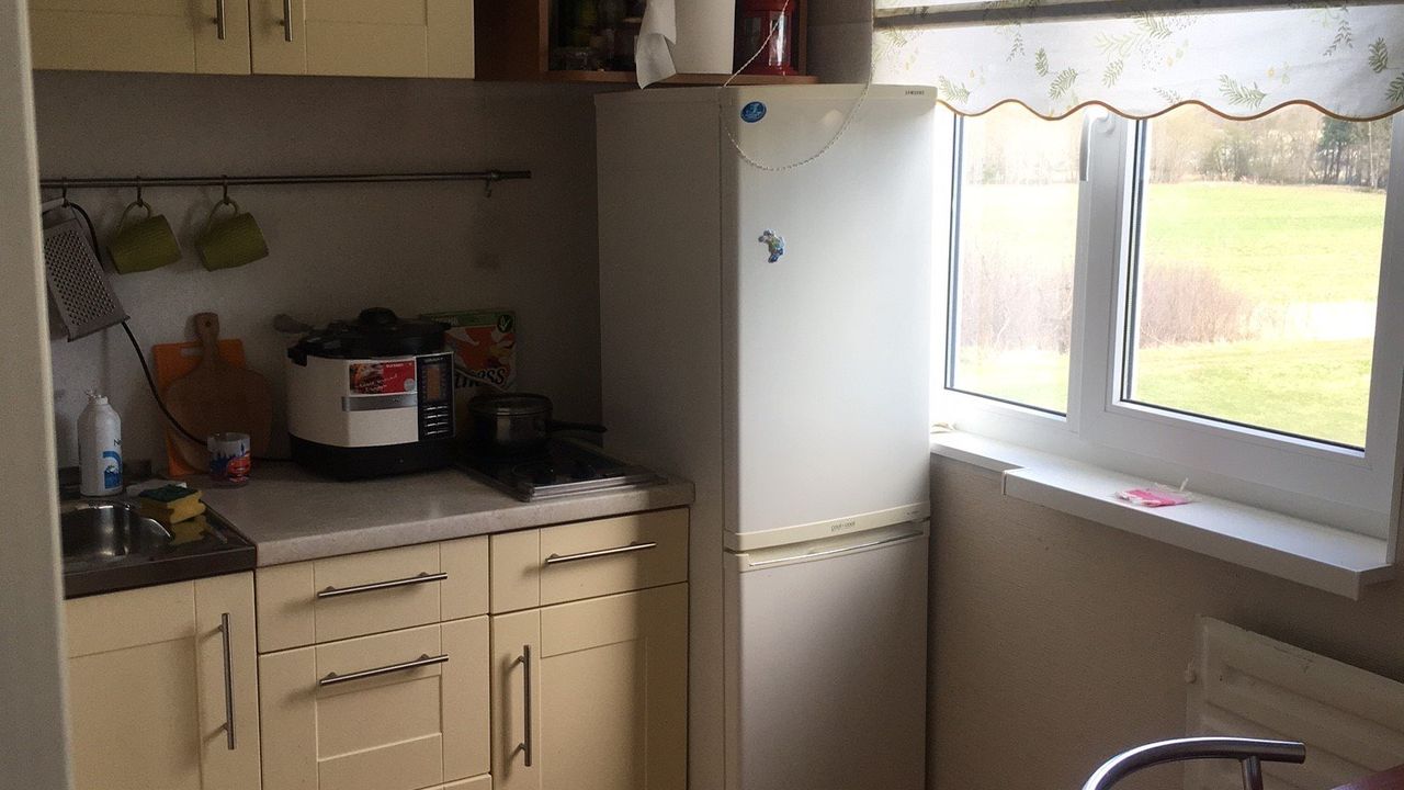 Продаётся небольшая уютная однокомнатная квартира 31 м2 (кухня + гостиная-спальня) с перепланировкой, отопление центральное. Коммунальные платежи по квартире летом 14 евро +счетчики, зимой до 70 евро+счетчики. На кухне полностью оборудована кухонная зона (все шкафы, плита, раковина и т.д.), есть стол, стулья, холодильник, висит большой водонагреватель. В коридоре стоит шкаф, вешалка для вещей и тумба. В комнате установлена кровать с ортопедическим матрасом и раскладной диван. В ванной комнате установлена душевая кабина и энергоэффективная стиральная машина. В квартире установлены пластиковый окна и железная дверь.