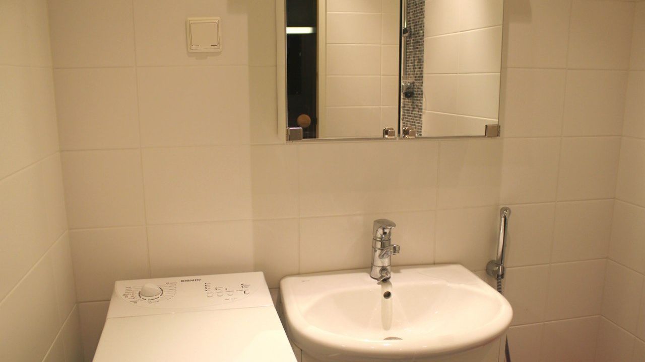В ванной комнате есть стиральная машина и сушильный шкаф.