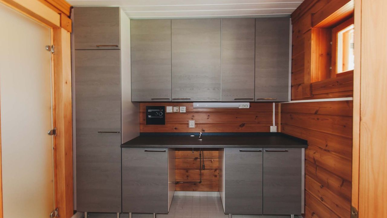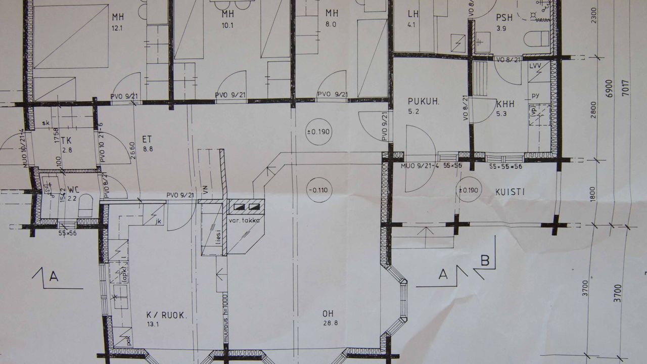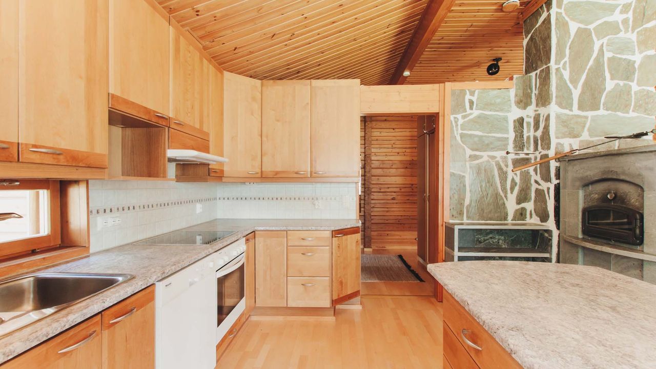 Дом состоит из 4 комнат, кухни, сауны, комнаты по уходу за домом, душевой и санузла. Полы деревянные, так есть ламинат.