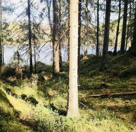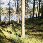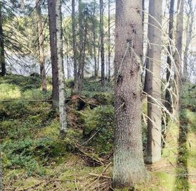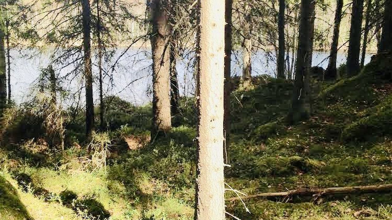 Лесной береговой дачный участок в окружении соснового леса на чистом лесном озере вблизи границы.