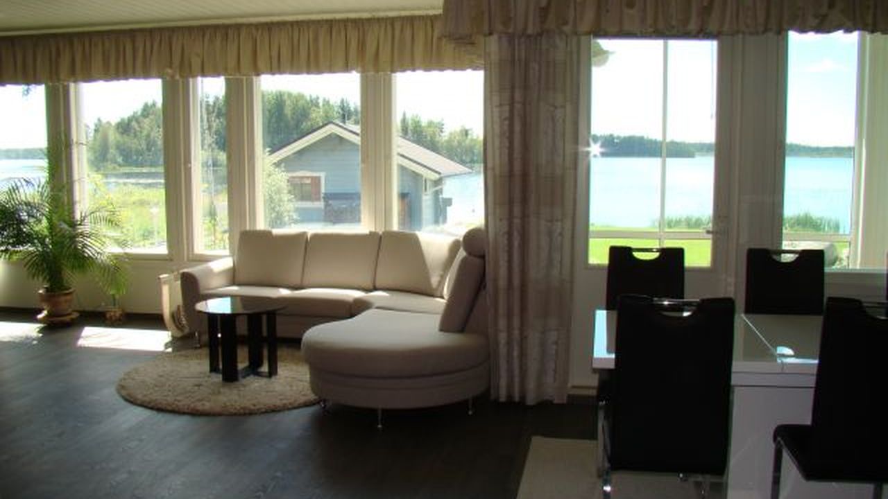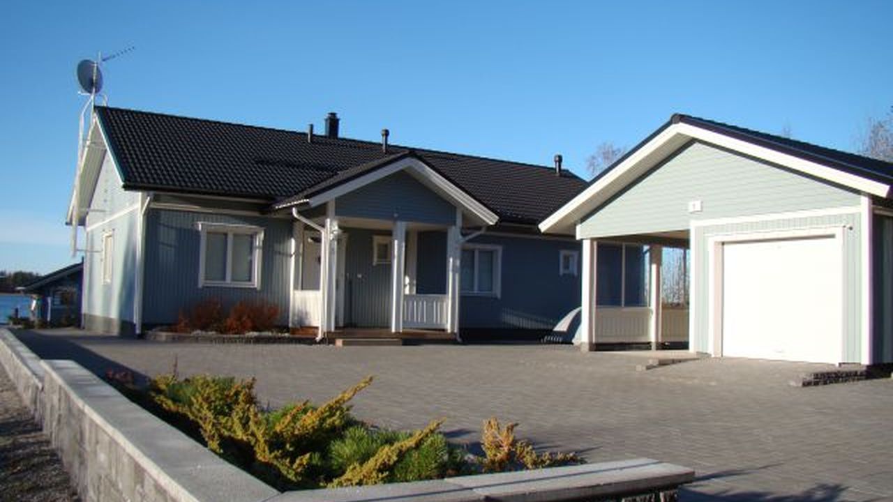 Дом для постоянного проживания в Юва (Juva), район Миккели (Mikkeli), на берегу озера Юкаярви (Jukajärvi). Большое рыбное озеро длиной 8 км. До центра Юва около двух километров , до ближайших горнолыжных спусков 12 км. Пешеходные дорожки и лыжня начинаются от дома. Бассейн и тренажерный зал рядом. До Миккели 40 км, до Савонлинна 60 км. До границы РФ со стороны Ленинградской обл. расстояние около 120 км. Великолепная инфраструктура для жизни, отдыха и спорта. Год постройки 2012-2013г. Дом площадью 134 кв. метра. В доме находятся гостиная, три спальни, кухня, хозяйственная комната, гардеробная , сауна, два туалета,душевая на два поста и большая терасса . В доме есть центральный водопровод и городская канализация. Отопление дома производится по средством теплового насоса фирмы Nilan , который имеет опцию охлаждения воздуха в доме. Он же производит горячую воду и контролирует приточно-вытяжную вентиляцию. Управление климатом в доме производится с цифрового пульта, который находится на стене в гостиной. Дополнительно в гостиной кондиционер Mitsubishi. Ядром дома является камин Ksenia производства Tulikivi.