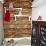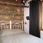 Планировка дома: каминная комната, объединенная с кухней и обеденной зоной, спальня, где есть отделенный альков для ребенка, терраса.