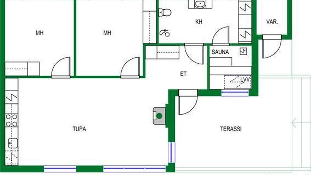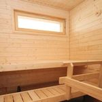 кухня, объединенная с гостиной, 2 спальные комнаты, банный комплекс: сауна, душевая, туалет, хоз. помещение, терраса.