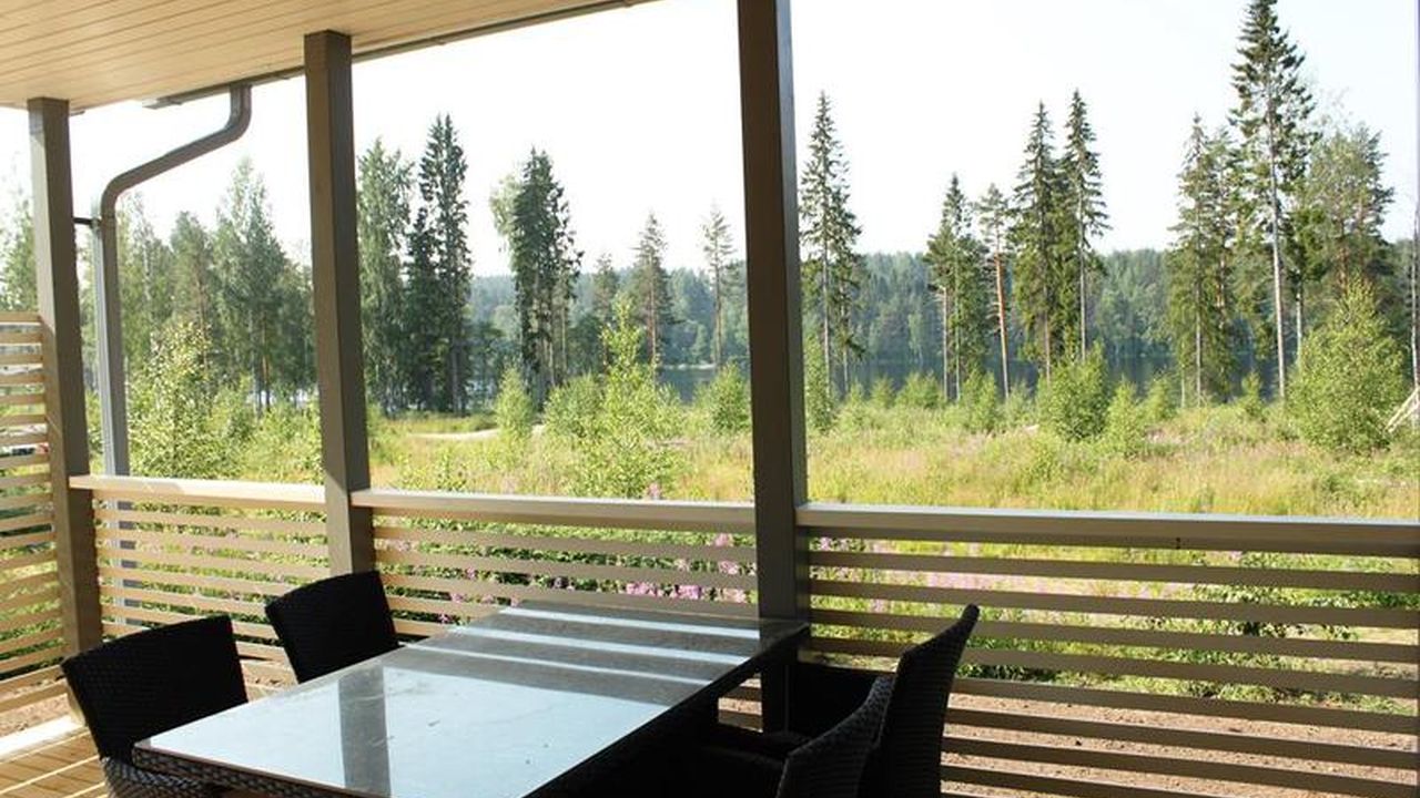 Небольшая дача расположена на территории базы отдыха, недалеко от города Пункахарью на берегу озера Сайма.