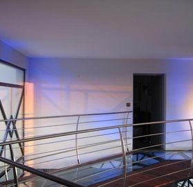 Каждая комната выходит на террасу. Внутренние лестницы из гранита, перила из нержавеющей стали, высокие стеклянные окна высотой 6 метров.