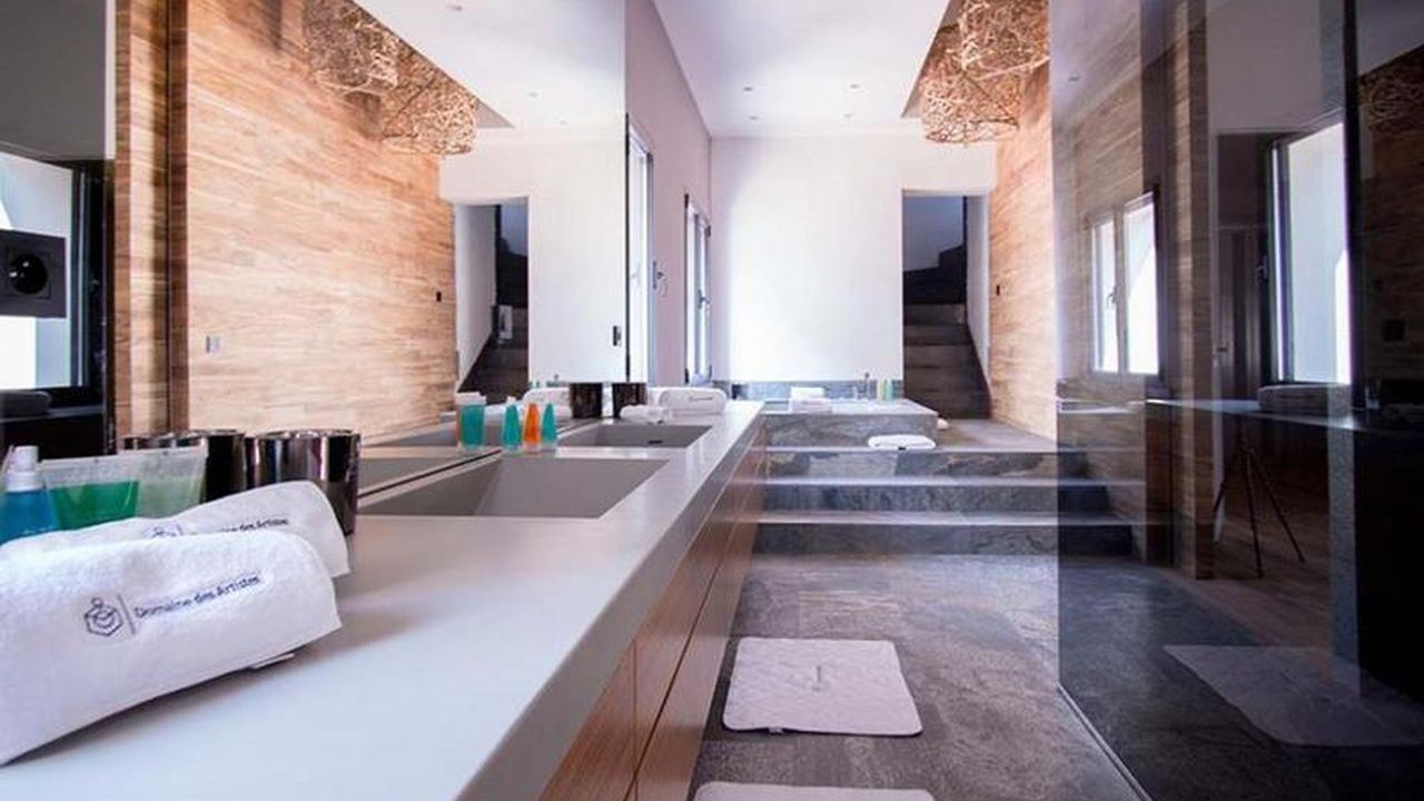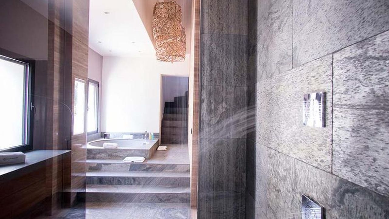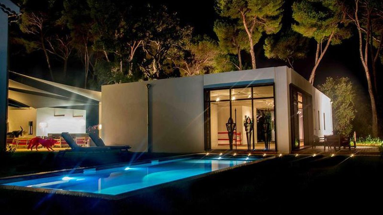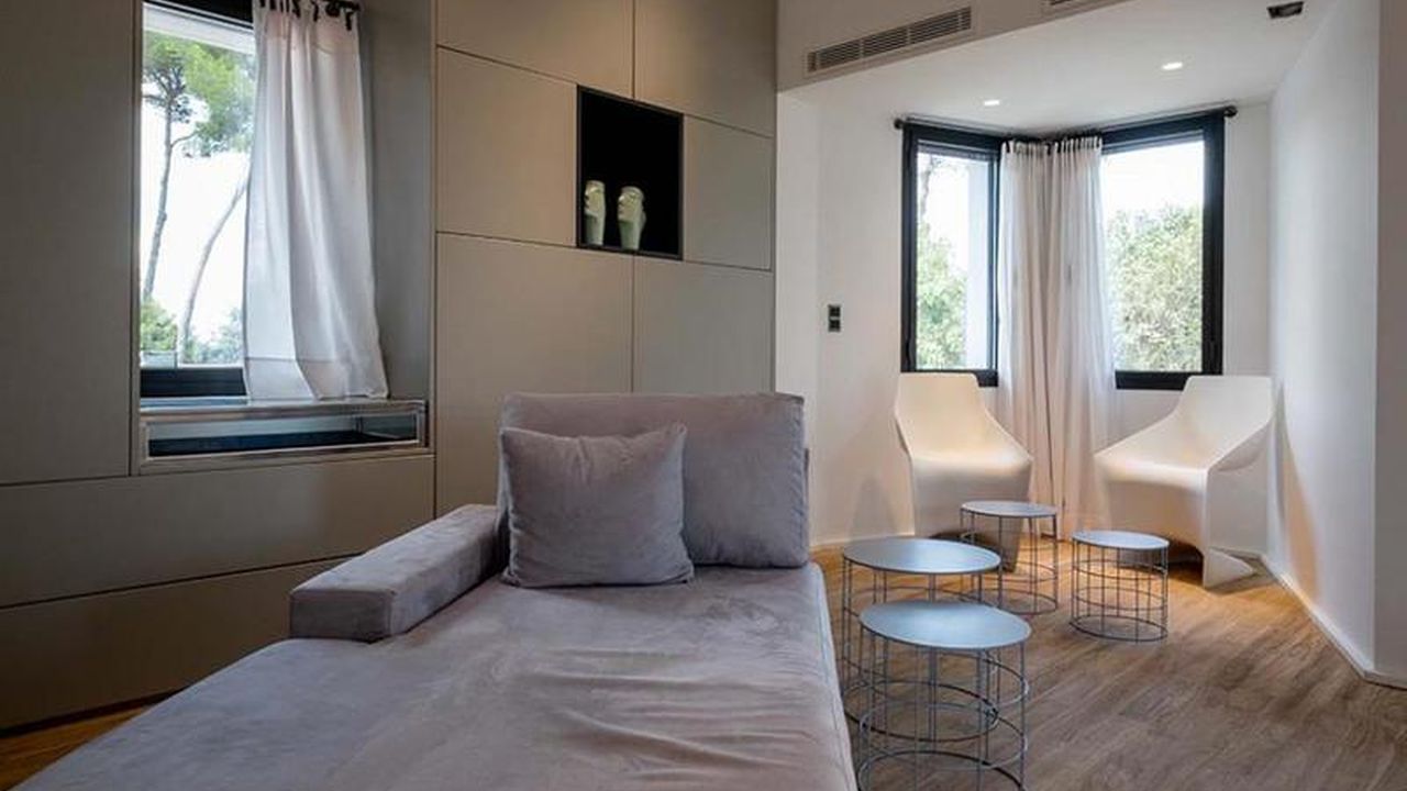 Хозяйская вилла 270 кв.м. состоит из спальни 135 кв.м. гостиной и профессиональной кухни, лифт, бассейн, винный погреб, очень все роскошно.