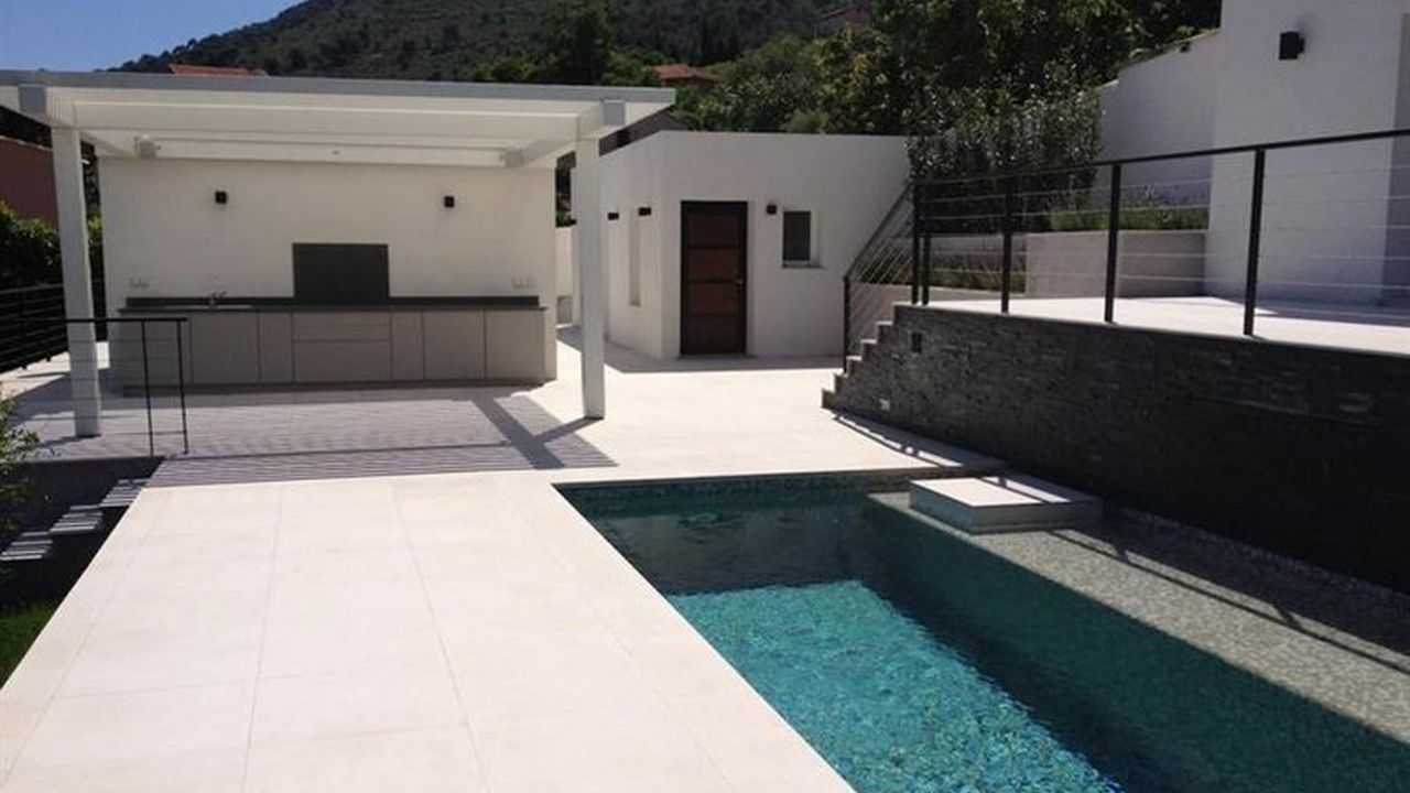 Над Монако (в Босолей), современная вилла. 4 комнаты, 3 ванные, площадь 111.01 м2 на территории 800 м2. Студия независимая 19,28 м 2 с террасой на юг. Вид на Порт Монако и море. Бассейн, 2 паркинга