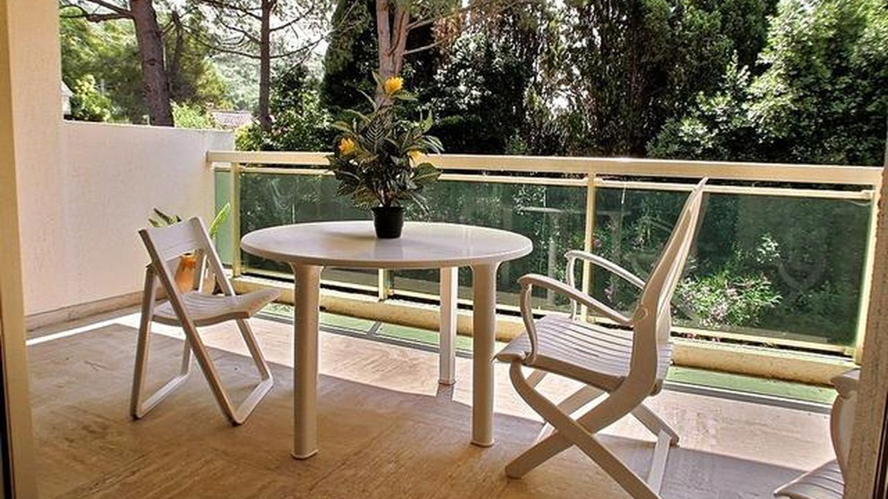 Спальный уютный район. Южная сторона.Есть бассейн. Студия 33м2 выходящая на красивую террасу, в резиденции есть попугаи и соловьи. Светлая квартирка. REF: FR172359