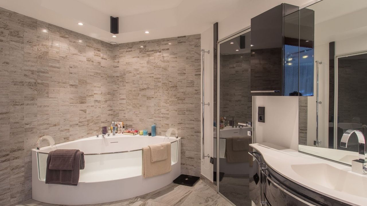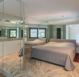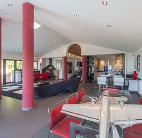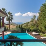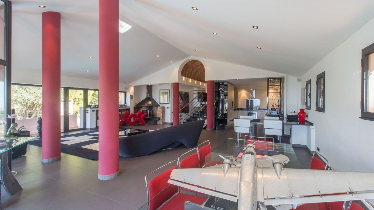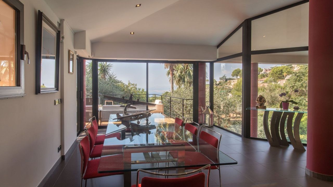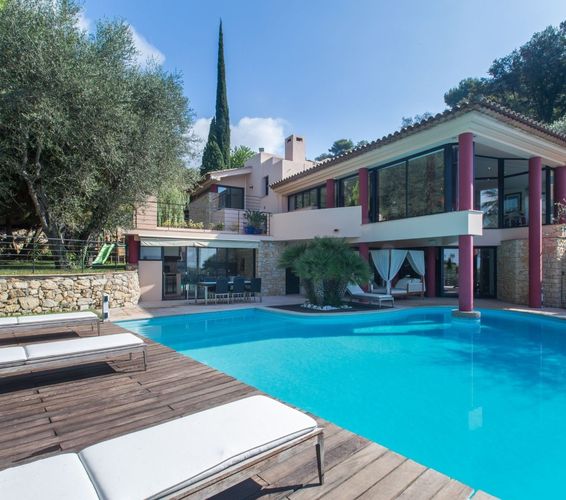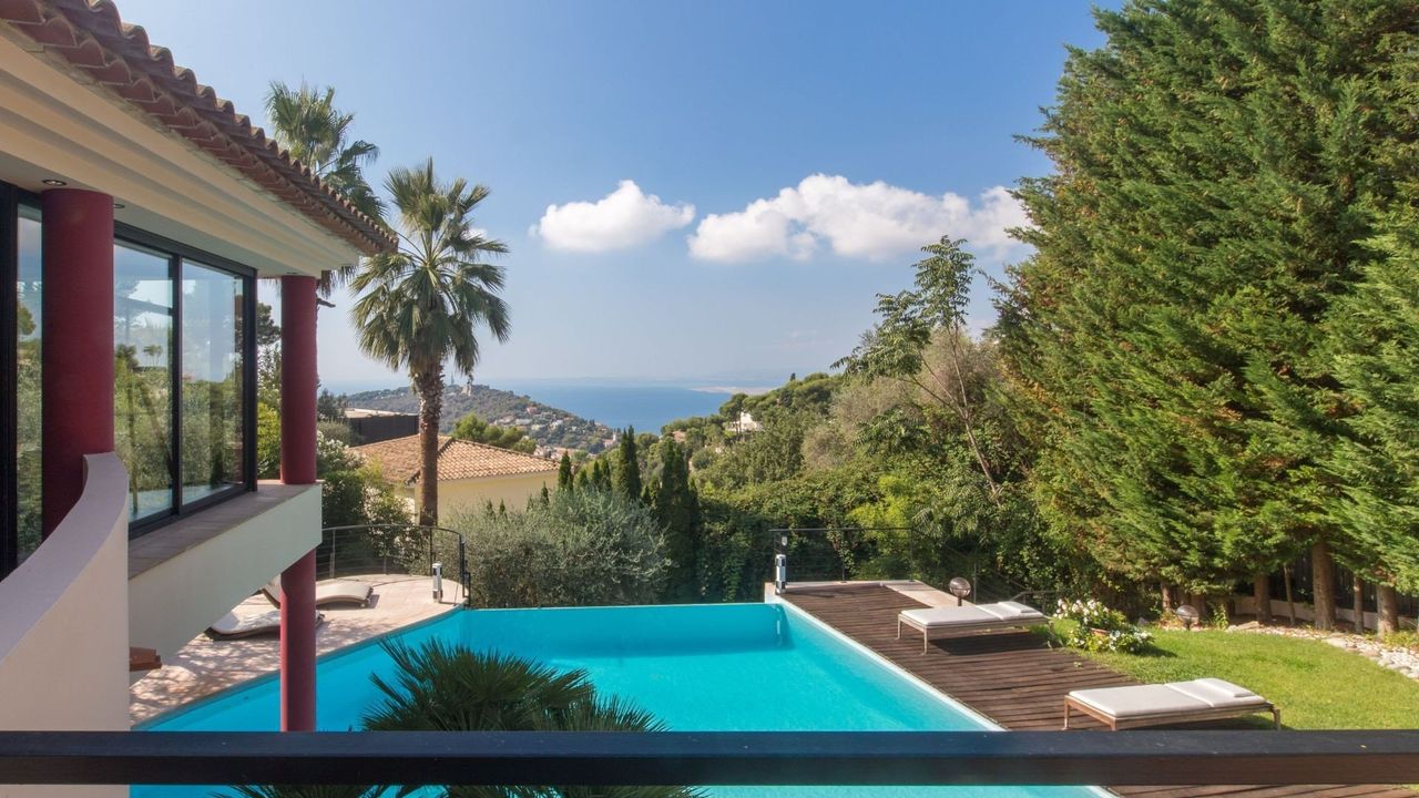 Вилла с современным дизайнерским интерьером в престижном закрытом домене в Villefranche sur Mer. На вилле 4 спальни, просторная гостиная с видом на море, камин, обогрев пола, кондиционеры, подвал с прачечной, меблированная студия, обогреваемый бассейн c его pool house, детская площадка.