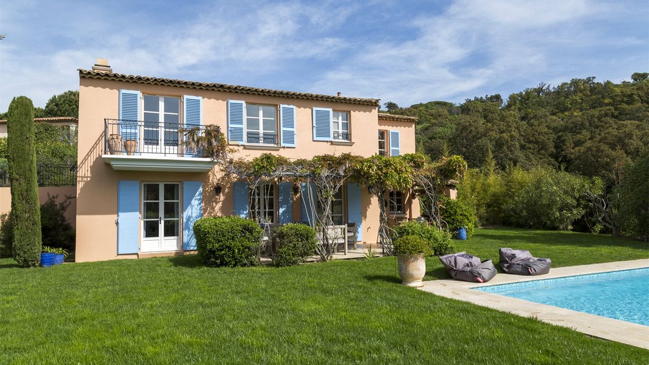 Дом находится в нескольких минутах езды от St-Tropez и пляжей Pampelonne. В нем открывается спокойная и тихая атмосфера, а также потрясающий вид на окружающую загородную местность и деревню Gassin.