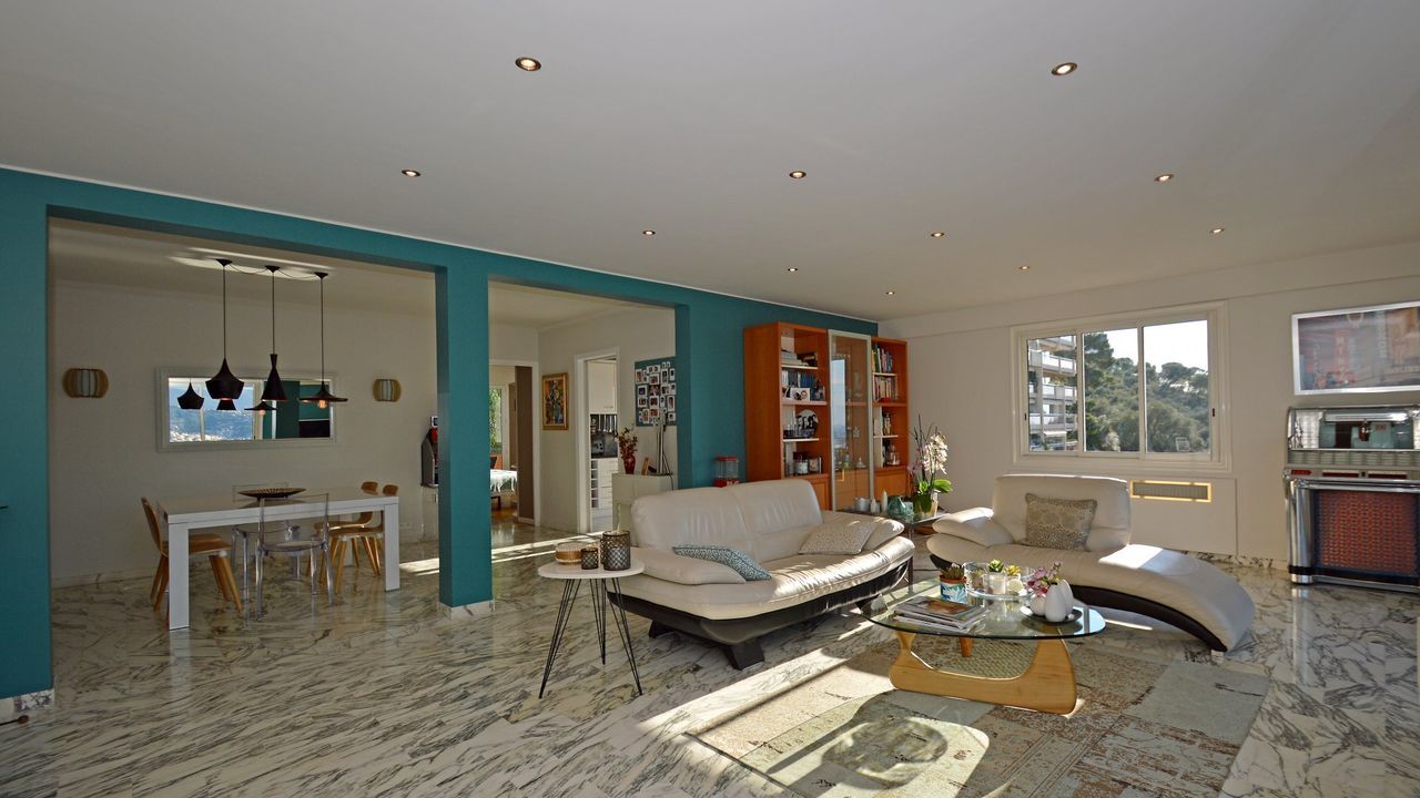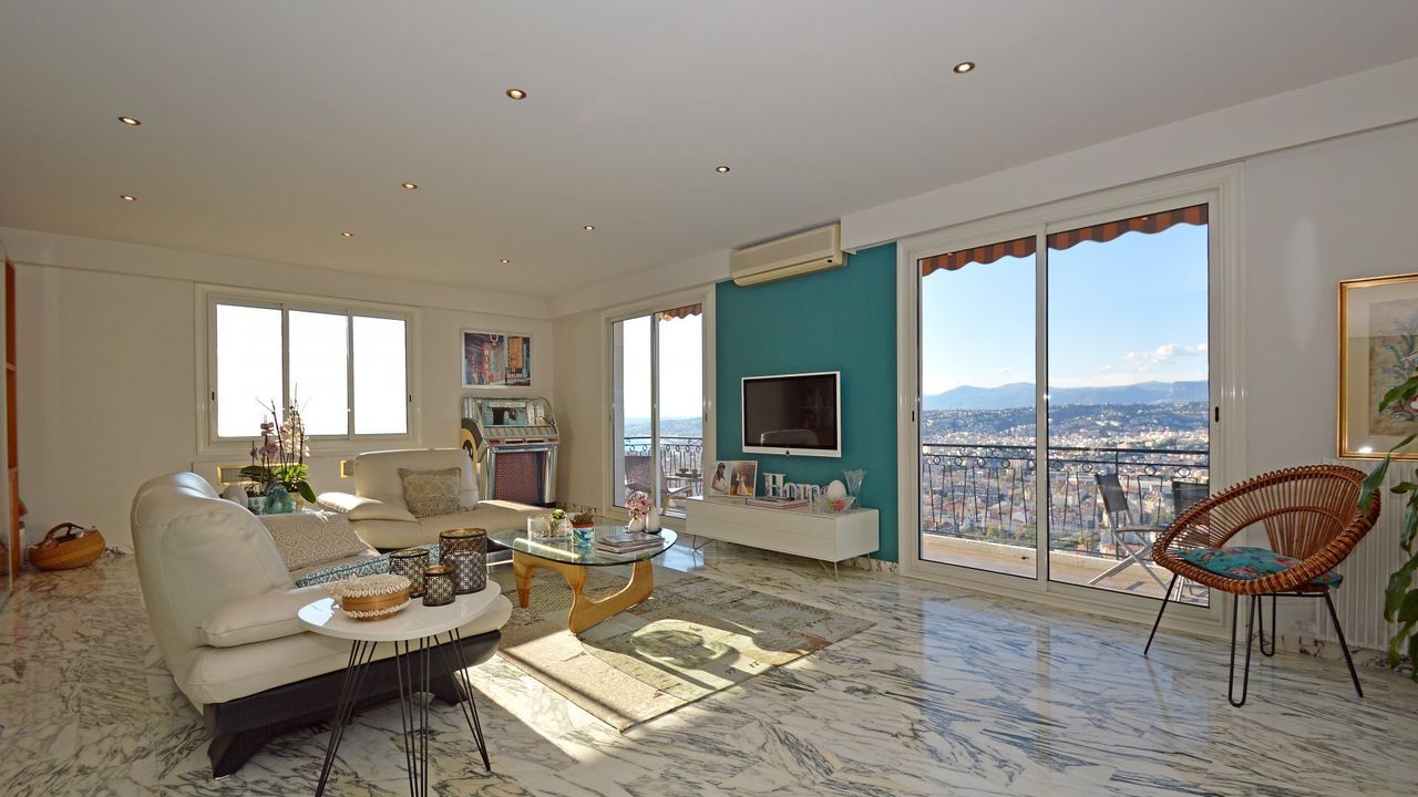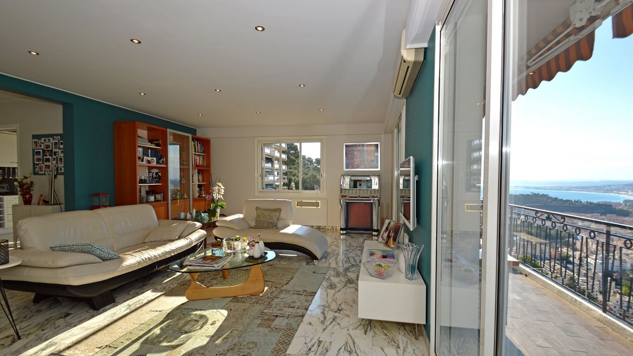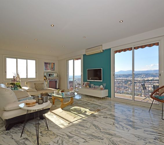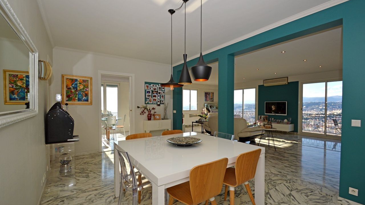Продаётся шикарная , очень светлая 3/4х комнатная квартира, 117м2 с террасой в отличном районе Ниццы, на последнем этаже элитной резиденции с панорамным видом на море.