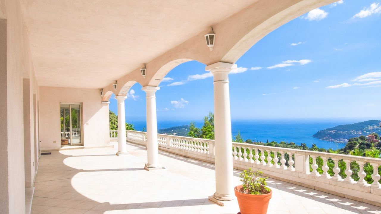 Вилла с живописным видом на залив Вильфранш сюр-мер и Сант-Жан Кап-Феррат. Из каждой комнаты этой виллы открывается вид на море. На втором этаже располагается отдельная квартира с террасой 60 м2, на первом этаже все четыре комнаты выходят на террасу 110 м2.