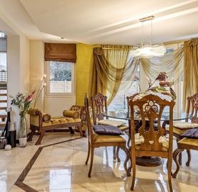 Вилла состоит из прихожей, просторной гостиной, прекрасно оборудованной кухни, 4 уютных спален, 4 ванных комнат, сауны, детской игровой комнаты и просторной террасы. Особняку также принадлежит красивый сад с ландшафтным дизайном, на территории которого находится бассейн.