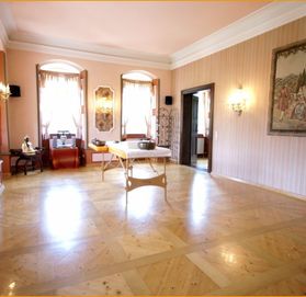 - 1 приемный зал - 1 приемная - 1 большая гостевая комната - 2 небольших зала - отдельная ванная комната в каждом номере - оздоровительный центр с массажными кабинетами - центральное отопление - подогрев пола - полы частично сделаны из индийского сланца - парковая зона с садом и прудом - бездымное использование в течение 24 лет - 2 профессионально меблированные кухни - 4 гостевых туалета - отдельная квартира в пристройке на территории замка - сарай для садового инвентаря - 12 парковочных мест - полностью отремонтирован - чердак в замке есть.