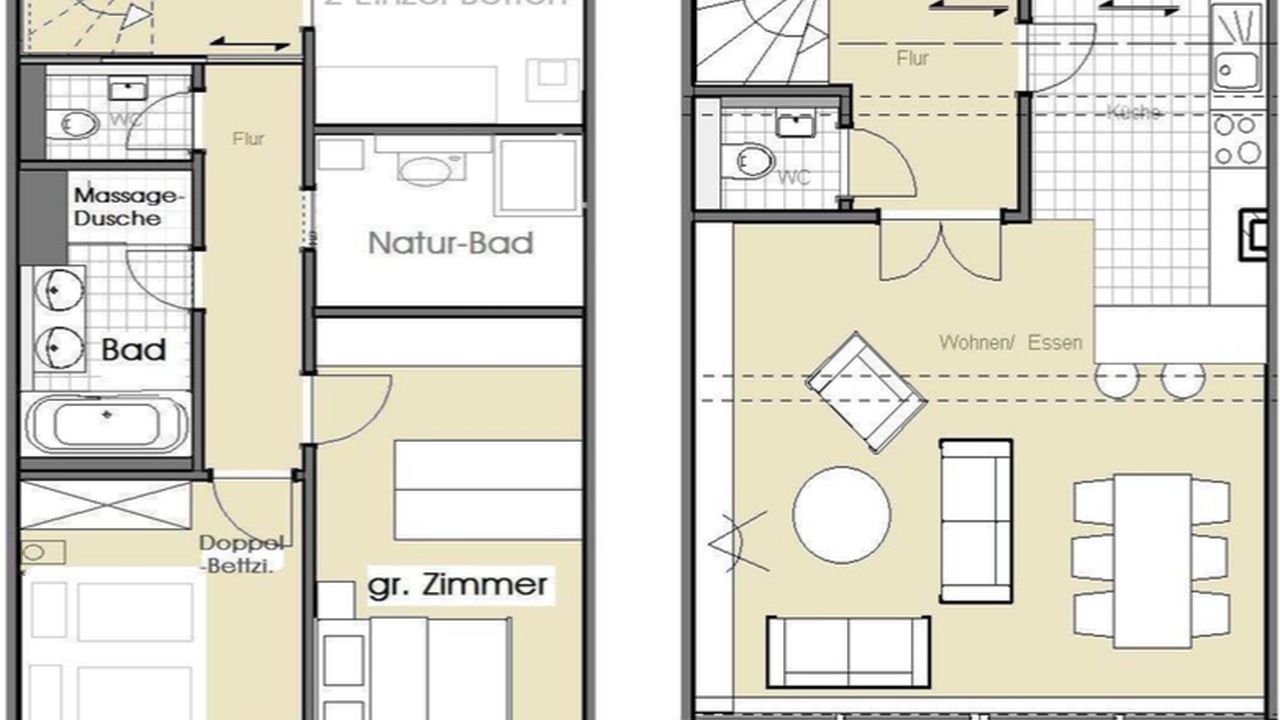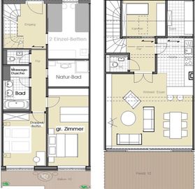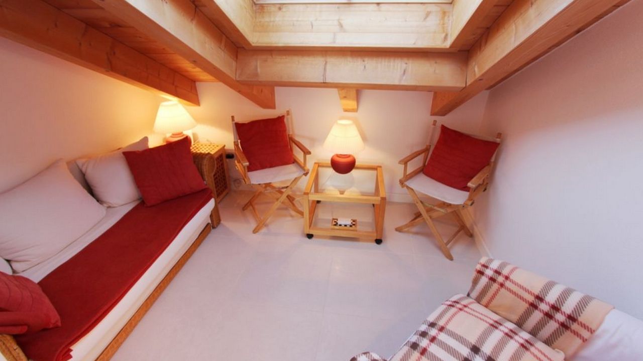 Внутреннее пространствоАпартаменты включают: большой вестибюль, спальни с 2 односпальными кроватями, большую ванную комнату с ванной, душевой кабиной с душем, туалет, еще две элегантные спальни, каждая с выходом на балкон с прекрасным видом на горы.Второй этаж: читальный зал, два туалета, гостиная - столовая с открытой кухней и прилегающей солнечной террасой на крыше с уникальным панорамным видом!