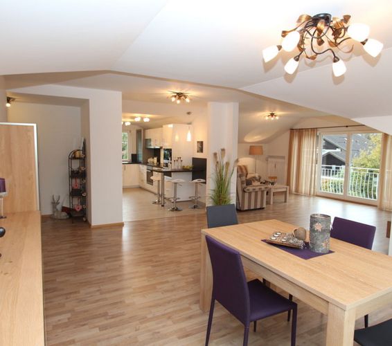 Просторная, открытого плана гостиная-столовая-кухня с большими мансардными окнами создает необычайно приятную и уютную атмосферу. Еще одна достопримечательность спа-салон с сауной, конечно. Поэтому эта квартира также подходит в качестве отдыха дома.Удобство центрального местоположения позволяет, проживать без автомобиля. Планировка: входная зона с гардеробом - кухня/ столовая и гостинная с французским балконом - гости/-кабинет - ванная комната с душем/туалетом - гостевой туалет - просторная спальня с прекрасным видом на центр города Гармиш.