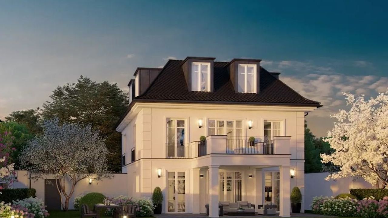 Дом расположен в престижном и в тоже время идиллически зеленом, тихом Грюнвальде, в нескольких минутах езды от центра Мюнхена. В районе доминируют виллы, стильные частные дома, подчеркивающие представительный характер Грюнвальда. Общественный транспорт в трех минутах ходьбы, станция железнодорожной дороги в пяти минутах езды на машине.