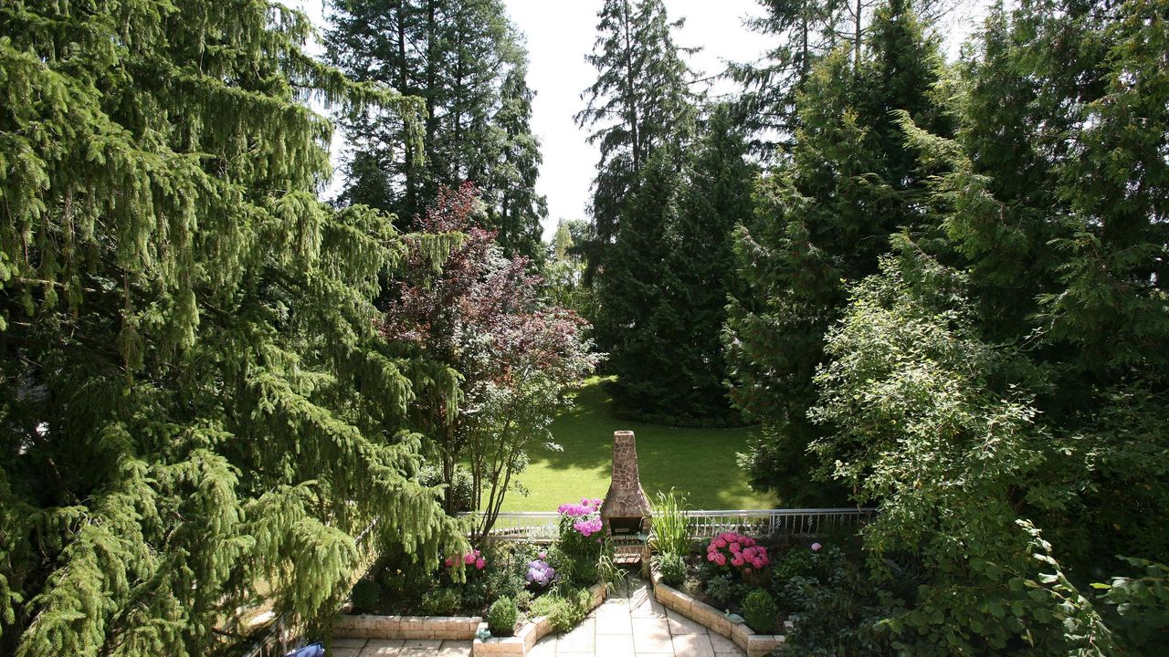 • великолепный, уютный сад, как парк, с большими деревьями;