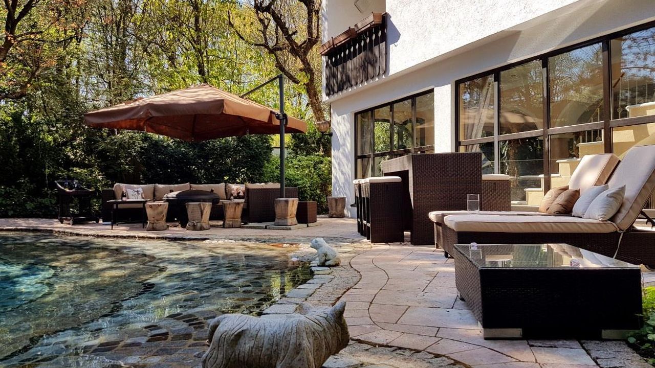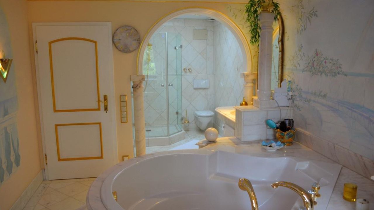 Продается дом с экзотическим шармом в Мюнхен, город на реке Изаре на юге Германии, в федеральной земле Бавария. Дом с роскошной и эксклюзивной мебелью хорошего качества, а также райский сад с каменистым природным бассейном. Этот дом имеет 210 квадратных метров, полезная площадь около 35 м2. Давайте начнем с входа в открытую и просторную гостиную с роскошной мебелью на заказ, а также с великолепной статуей. Большие окна дают много света для комнат. Все полы с подогревом и лестницы сделаны из лучшего мрамора. Для дамы дома кухня представляет собой особый интерес, прекрасная встроенная кухня из дерева, которая, как и мебель в баре были изготовлены на заказ. Прекрасная мраморная лестница и позолоченные поручни ведут вас наверх в зал, а также роскошно оформленные номера с роскошной ванной с туалетом, отдельный душ и ванная, оборудованные позолоченной посудой. Второй этаж состоит из двух комнат. Офис обеспечивает вам спокойствие, чтобы заниматься частной или деловой работой. Фитнес-зал позволяет использовать упражнение в течение длительного времени, чтобы очистить голову после утомительного дня и для улучшения собственного здоровья. Просторное подсобное помещение с тремя стиральными машинами и просторными встроенными шкафами. Терраса, выполненная из розового натурального камня, приглашает вас отдохнуть на высококачественной диване и наслаждаться красотой японского сада и идиллической тишиной недалеко от центра Мюнхена. Благодаря отличному соединению с дорожной сетью и идеальному расположению дома, и центр Мюнхена, и доступ к автомагистралям достижимы за минимальное время. Унтермензинг - идеальное место для проживания в зеленой среде. Вид в этом районе по-прежнему преобладают старые и новые односемейные и многоквартирные дома а также обширные зеленые зоны. Однако этот жилой район предлагает больше, чем просто хорошую инфраструктуру. Унтермензинг обеспечивает значительный кол-во детских садов, школ что делает его в этом отношении, возможно, наилучшим районом во всем Мюнхене. Год постройки 1980 год. Для получения дополнительной информации пожалуйста свяжитесь с нами.