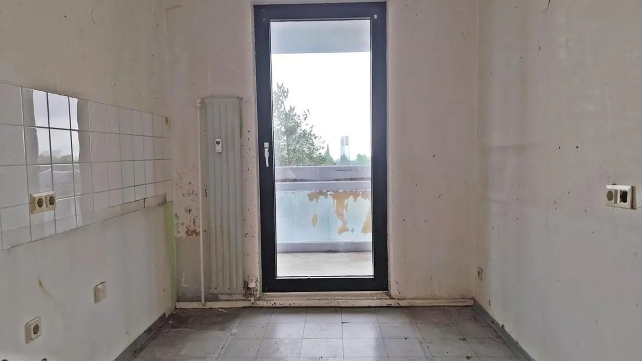 Эта двухкомнатная квартира расположена на седьмом этаже многоквартирного дома и находилпсь в одной аренде уже около 50 лет. Обои и ковры, которые долгое время были в изношенном состоянии, были сняты. Ванная комната также в первоначальном состоянии и нуждается в ремонте.