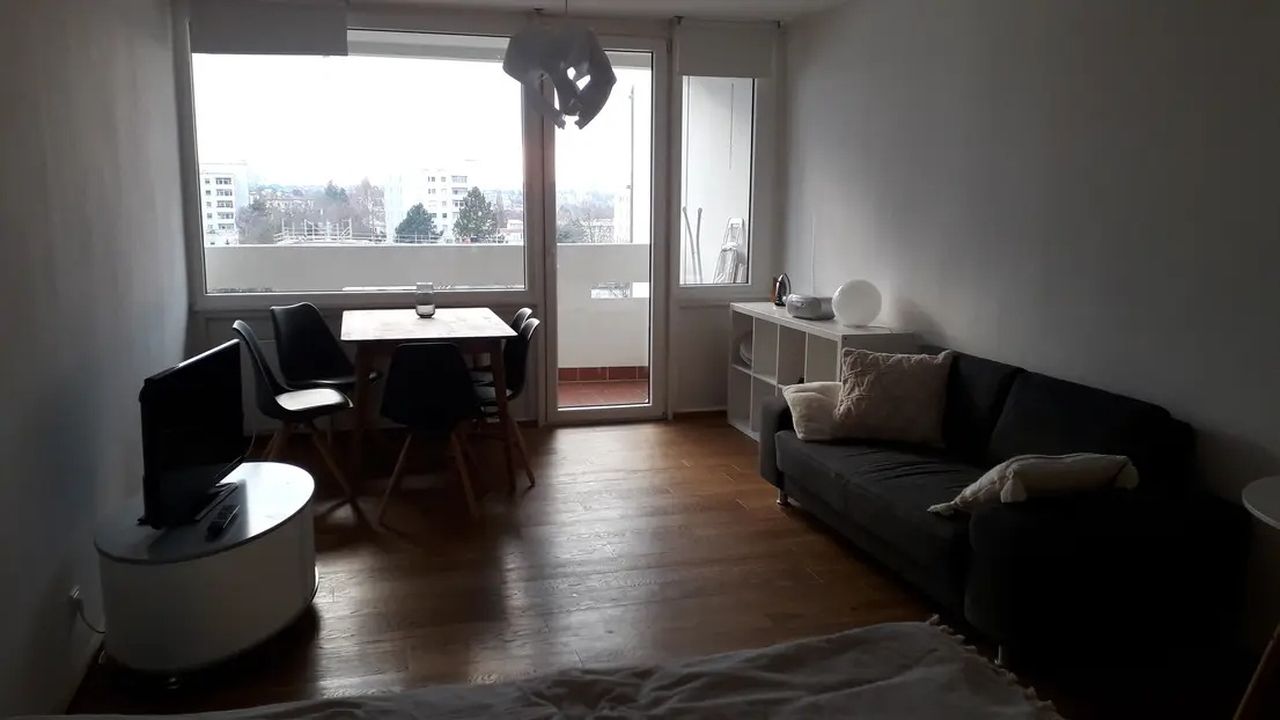 Германия. Франкфут-на-Майне. Прекрасная однокомнатная квартира с кухней, ванной комнатой и балконом с видом на горизонт.