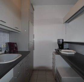 Эта уютная квартира предлагает много пространства благодаря продуманной планировке. Она расположена в ухоженном жилом доме. Лифт с комфортом доставит вас на 12-й этаж. Парковочное место включено в стоимость и может быть приобретено.