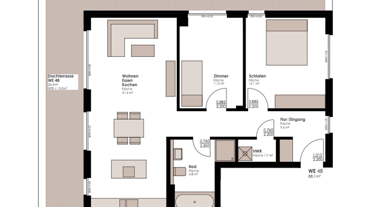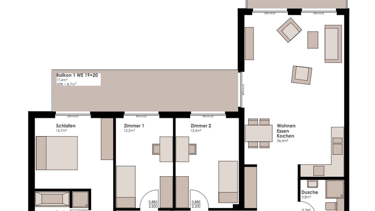 На площади в 3100 кв. м., огороженная территория будет построенно 49 квартир в двухэтажном здание. Которые, будут окруженны зеленью, современная и открытая архитектура делает каждую квартиру в новостройке комплекса привлекательной недвижимостью. Все жилые единицы имеют сертификацию KfW-эффективность по умолчанию 70 и имеют террасы на верхних этажах просторные балконы или крыши. На первом этаже квартиры имеют красивые террасы и почти везде частный садик, для барбекю. Таким образом, мечта сад-квартира может быть во Франкфурте, наконец, реальностью.