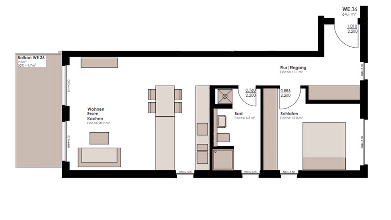- 2х комнатная квартира – 64м2 – от 336.000,00€ до 399.000,00€(3 квартир)