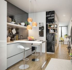 Современная однокомнатная квартира в отличном спальном микрорайоне города. Квартира расположена в двух плавно соединяющихся домов в один жилой, с красивым зеленым садом на заднем дворе.
