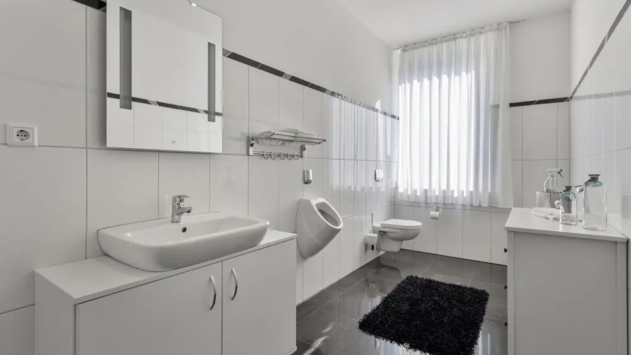 Двухэтажная коммерческая недвижимость с несколькими офисными помещениями, конференц-залом, несколькими подсобными помещениями, мобильным легким залом и эксклюзивной жилой зоной (корпоративные апартаменты), а также гаражами и парковочными местами предлагает вам универсальные варианты использования и привлекает различные группы заинтересованных лиц с четкими идеями и различными требованиями к использованию одновременно.
