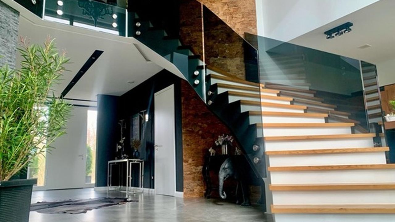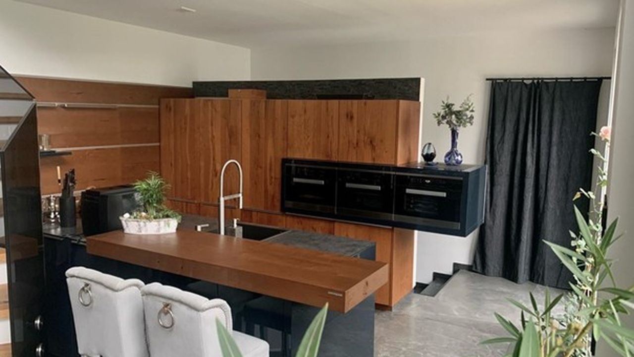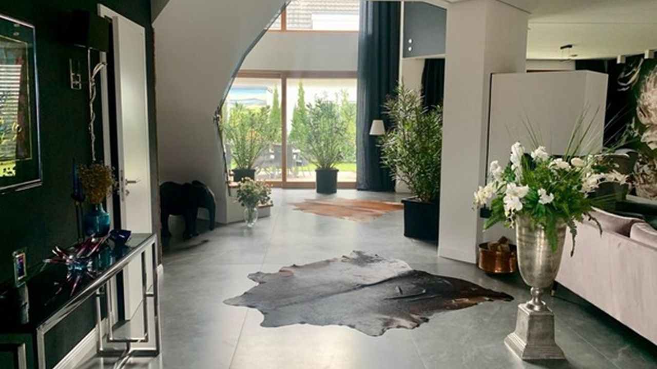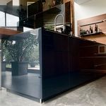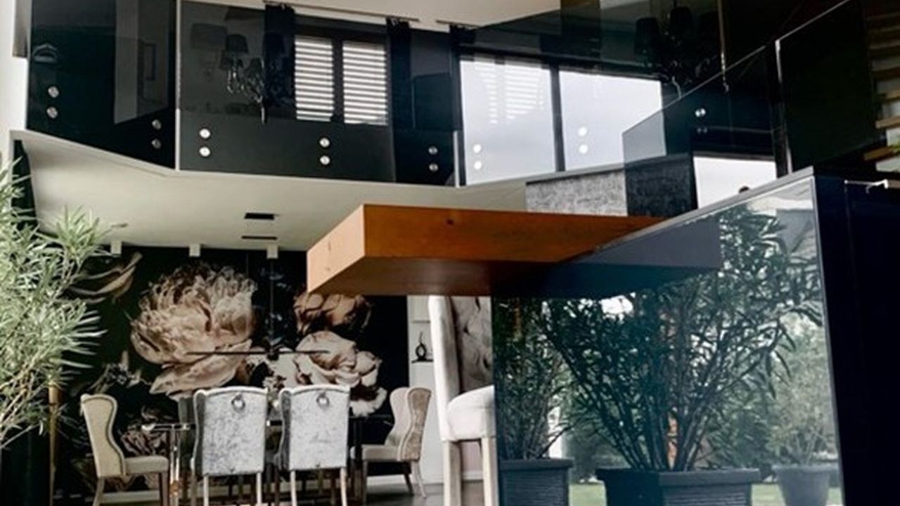 Элегантная кухня от Nolte оснащена бытовой техникой Miele. Особое внимание уделено деталям: винный погреб с эффектным стеклянным потолком толщиной 42 мм, входная дверь PIRNAR размером 2,70 x 1,15 м, окна высотой 2,55 м из натурального дуба с алюминиевой наружной отделкой и электро-жалюзи.