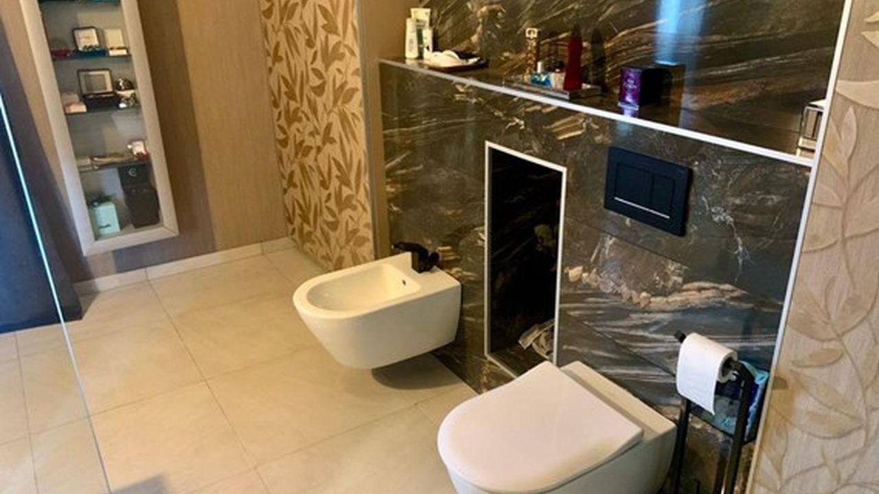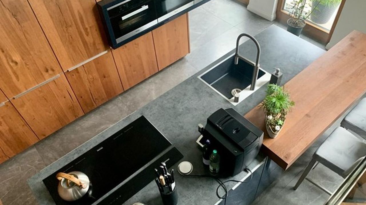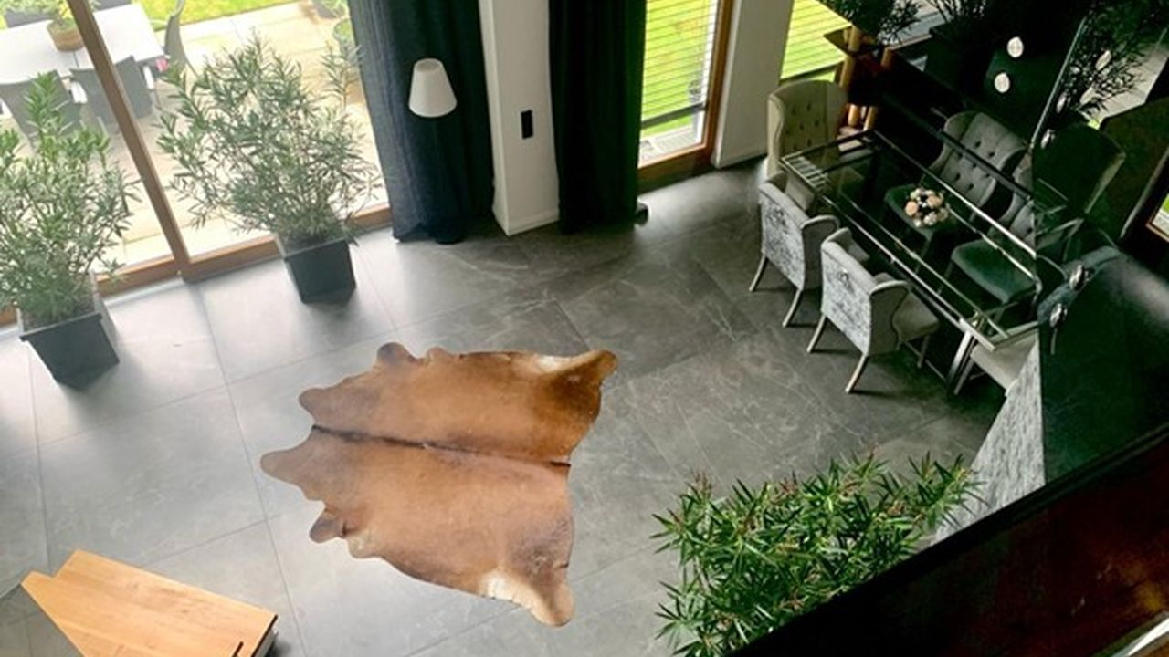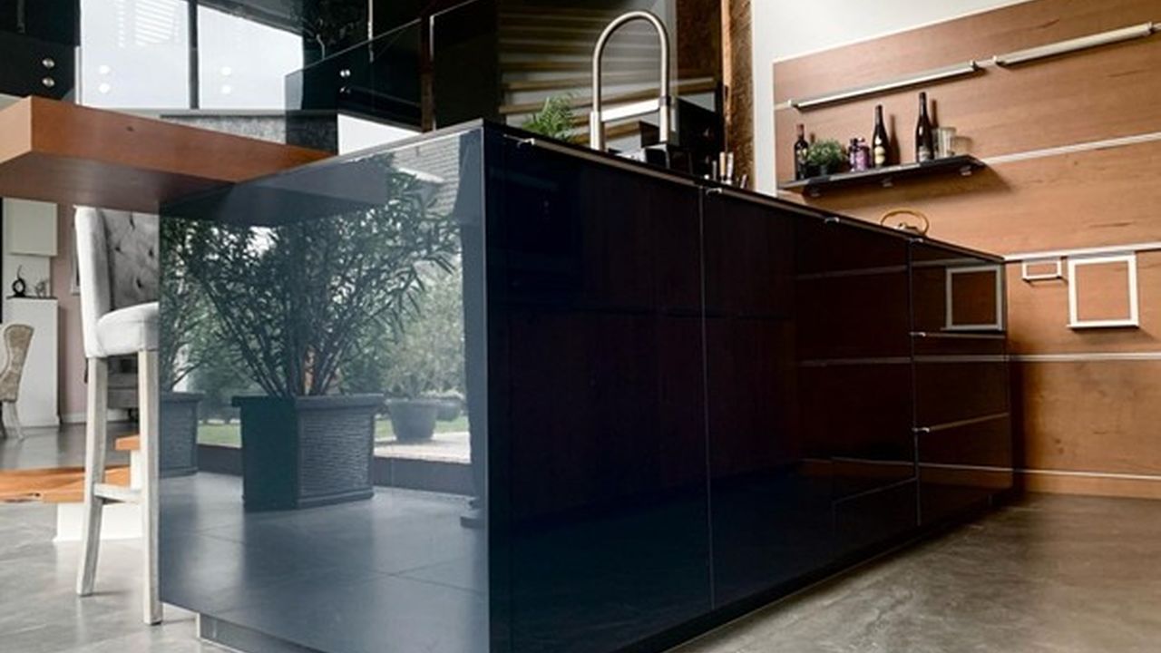 Элегантная кухня от Nolte оснащена бытовой техникой Miele. Особое внимание уделено деталям: винный погреб с эффектным стеклянным потолком толщиной 42 мм, входная дверь PIRNAR размером 2,70 x 1,15 м, окна высотой 2,55 м из натурального дуба с алюминиевой наружной отделкой и электро-жалюзи.