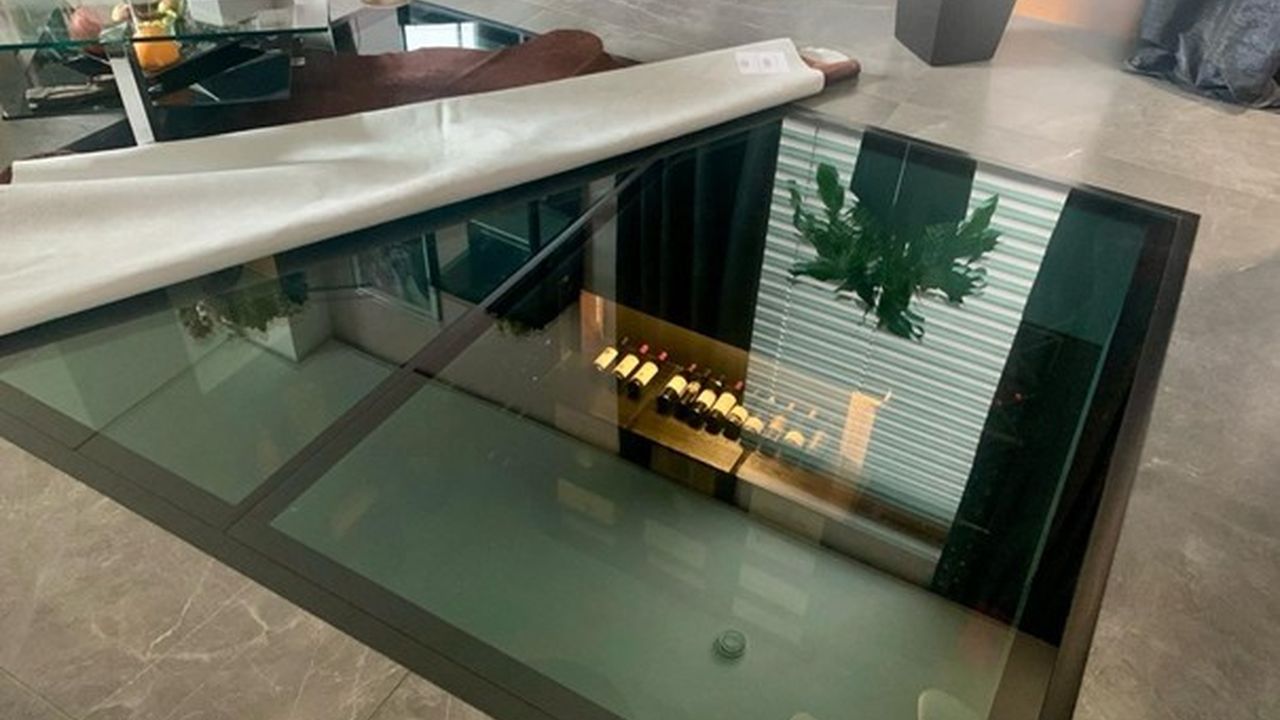 Винный подвал со стеклянным потолком (42 мм толщина стекла).