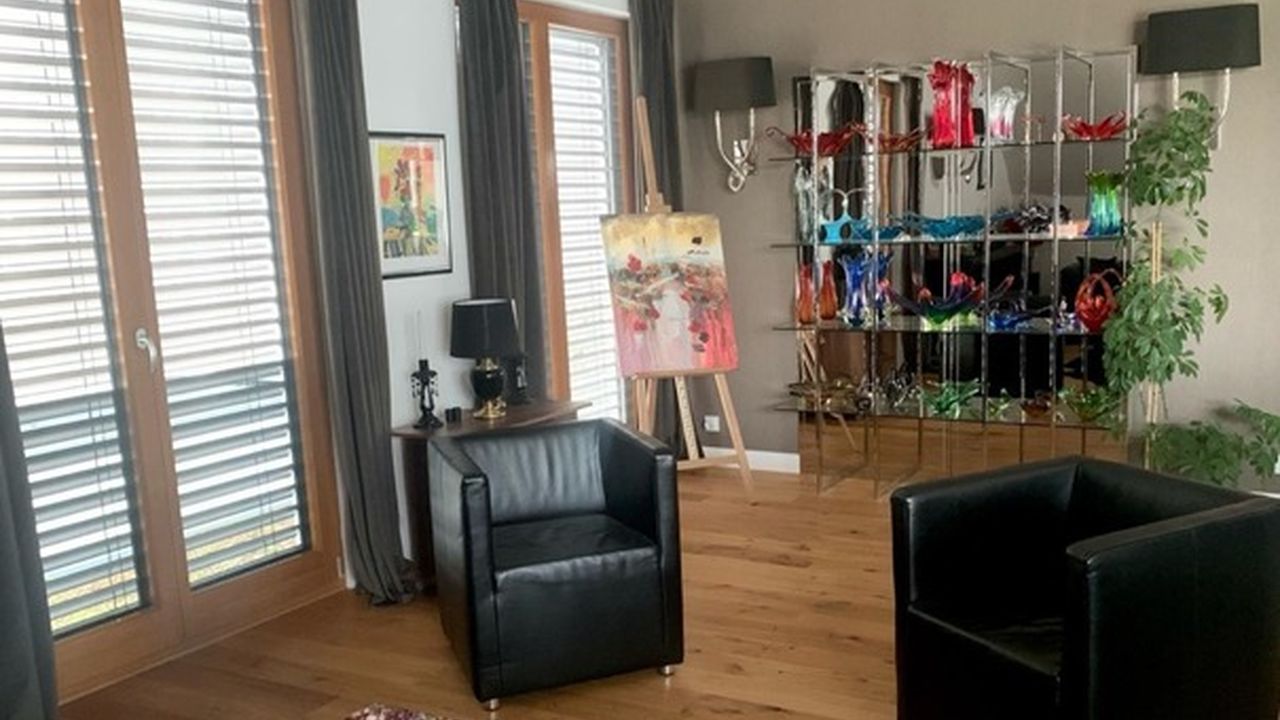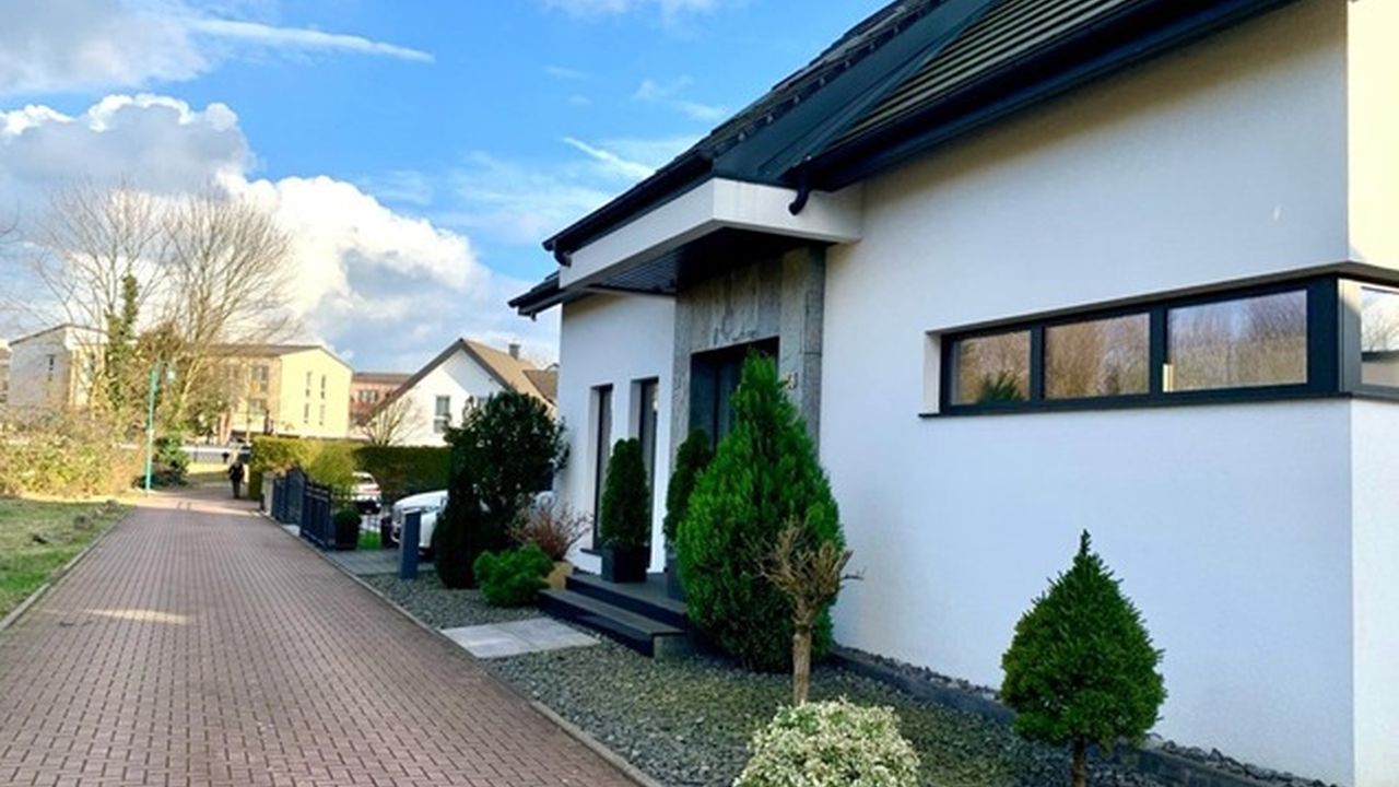 Дом находится на границе Дуйсбурга и Дюссельдорфа, всего в 15 минутах от аэропорта Дюссельдорфа. Частная улица, где расположено всего 8 домовладений, обеспечивает тишину и приватность. В пешей доступности – рестораны, кафе, магазины, аптеки, банки, пекарня и отель. Из окон открывается великолепный вид на гольф-поля.