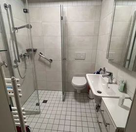 Квартира состоит из прихожей, душевой комнаты, которая уже была модернизирована в 2020 году, гостиной-столовой с открытой,