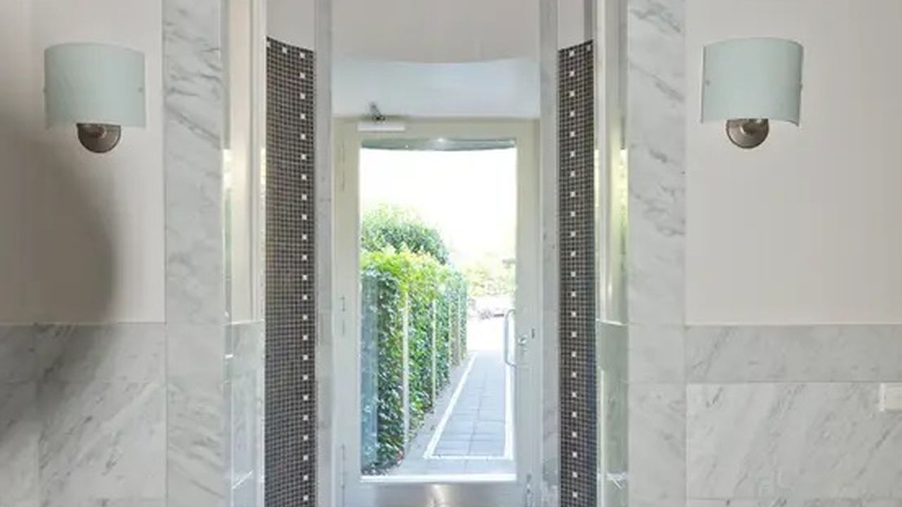 • Входная зона была расширена за счет овального вестибюля. Перед вестибюлем установлена новая входная дверь из эмалированного алюминия с большой площадью остекления.